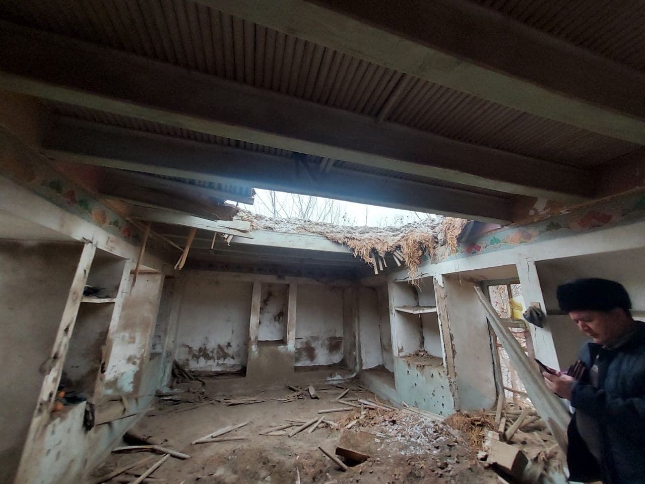 А другой счастливый случай помог сберечь имущество в доме одного из жителей. Уезжая на заработки в Россию, мужчина перенес все свои вещи из одной жилой комнаты в другую. Оказалось, что не зря. Снаряд попал в крышу пустой комнаты, которая сейчас нуждается в капитальном ремонте.
