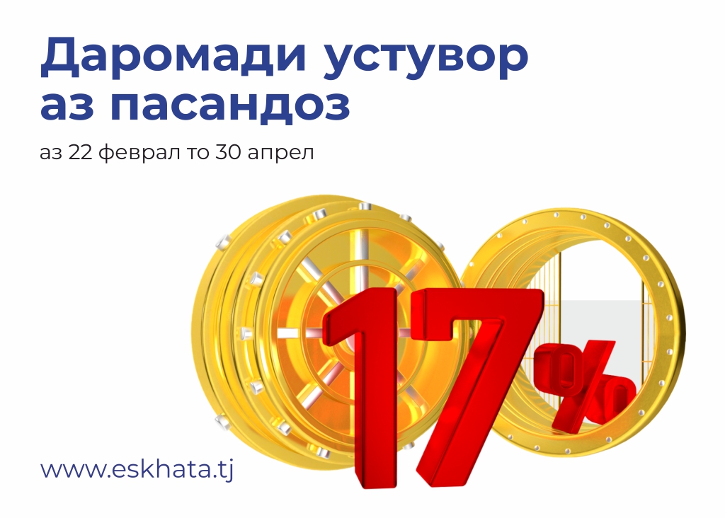 17% – стабильный процент, который предлагает Банк Эсхата своим клиентам при открытии срочного вклада в рамках акции.