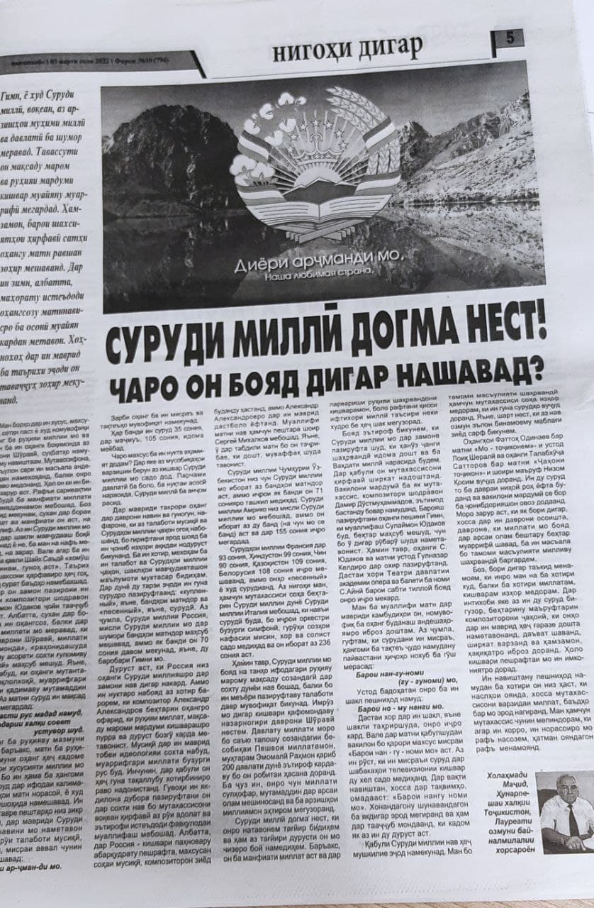Композитор, Народный артист Таджикистана Холахмади Маджид в своей опубликованной статье призвал изменить музыку национального гимна и выбрать для него стихотворение Лоика или Низома Косима. Он считает, что низкий уровень и несоответствие музыки национальному духу является основной причиной для изменения гимна.