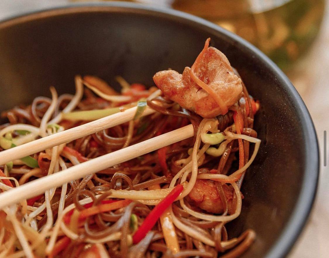 Фунчоза — стеклянная, прозрачная лапша из рисовой муки. Она выглядит оригинально и сочетается с любыми начинками.