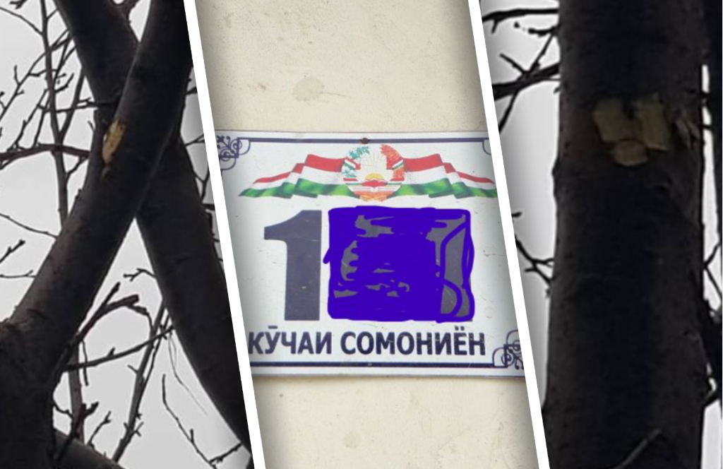 По словам властей и владельца дома, две пули, выпущенные кыргызскими пограничниками около 13:00, попали в яблони во дворе дома жителя села Сомониен Наима Абдуллоева по адресу ул. Сомониён, 144, и у них есть фотография с места происшествия в качестве доказательства.