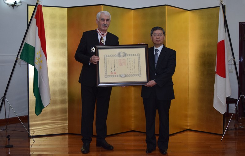 В Посольстве Японии в Республике Таджикистан 15 марта состоялась церемония награждения г-на Олима Салимзода, бывшего члена Маджлиси намояндагон Маджлиси Оли Республики Таджикистан, Орденом Восходящего солнца — Золотая и Серебряная звезда. Эту награду вручают за выдающиеся заслуги в развитии дружеских отношений Японии с другими странами, сообщает посольство Японии в Таджикистане.