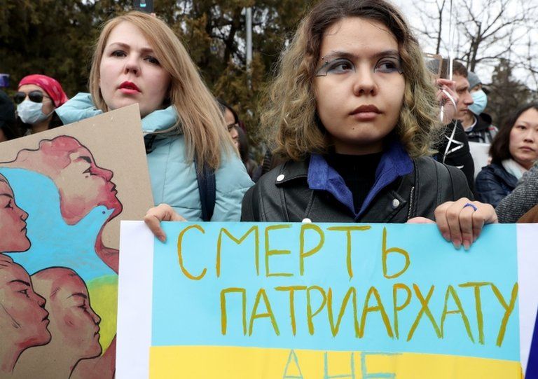 В соседней Армении прошли акции как в поддержку Украины, так и в поддержку России — одинаково немногочисленные. В Бишкеке и Алматы антивоенные демонстрации были приурочены к 8 марта. Они также не были массовыми, однако в Кыргызстане суд на месяц запретил проведение протестов у российского посольства.