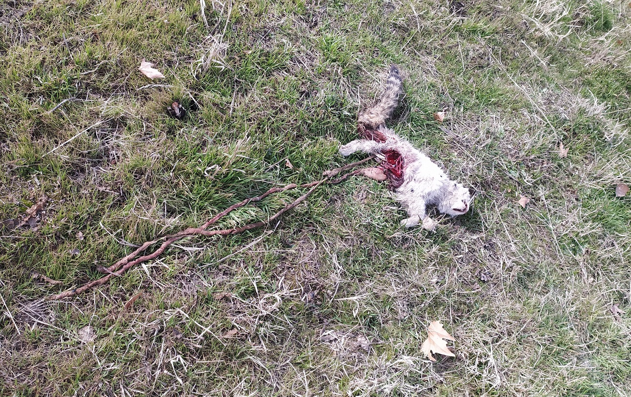На этом поле был найден также труп растерзанной кошки, у которой отсутствовала нижняя часть тела и задняя правая лапа. Глаза были выколоты, а кишки выпущены наружу и растянуты по земле.