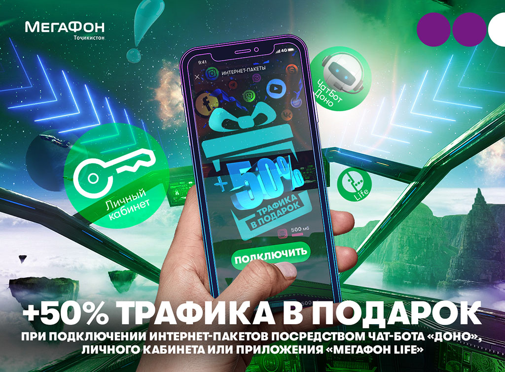 Главное условие для получения подарка – самостоятельное подключение абонентами интернет-пакетов. Сделать это можно через мобильное приложение «МегаФон Life», «Личный кабинет» (lk.megafon.tj) или с помощью чат-бота Доно. В акции участвуют интернет-пакеты серий Light и Pro.