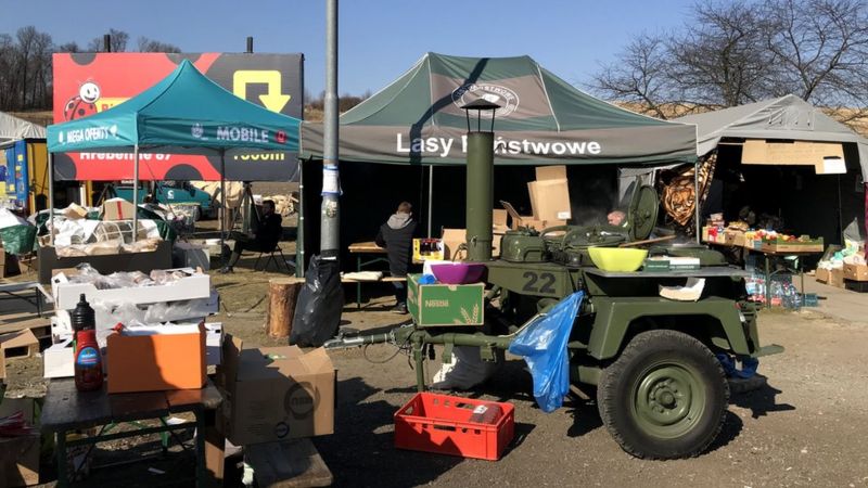 В часе езды от города Замосць находится один из пограничных переходов — Хребенне (с украинской стороны — Рава-Русская), где до начала войны ничего не было — лишь пограничный пункт и маленький ларек. Сейчас в этом месте огромное скопление беженцев.
