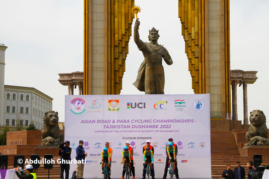 Сегодня утром в 10:30 с центральной площади Дусти стартовал первый заезд Чемпионата Азии по шоссейному велоспорту в командной гонке среди мужчин на дистанции 24 км.