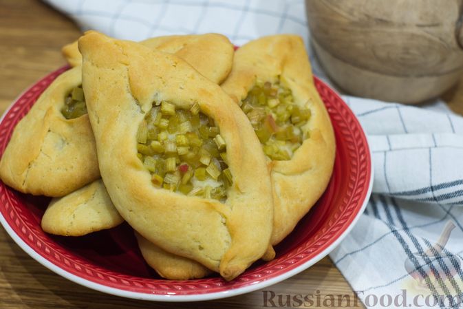 Расстегаи (приоткрытые пирожки) из дрожжевого теста на кефире, с ревенем