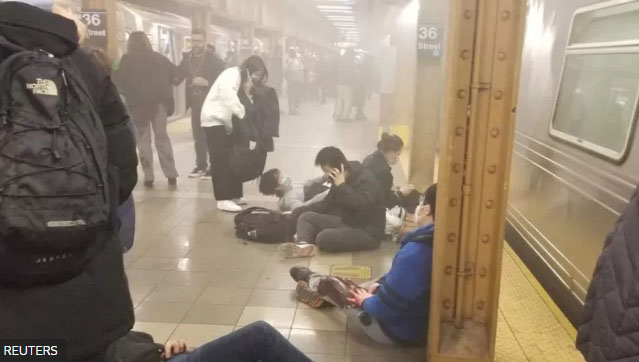 Как минимум 16 человек пострадали во вторник утром в результате вооруженного нападения на платформе нью-йоркского метро. Нападавший скрылся с места преступления, его разыскивает полиция, сообщает русская служба BBS News.