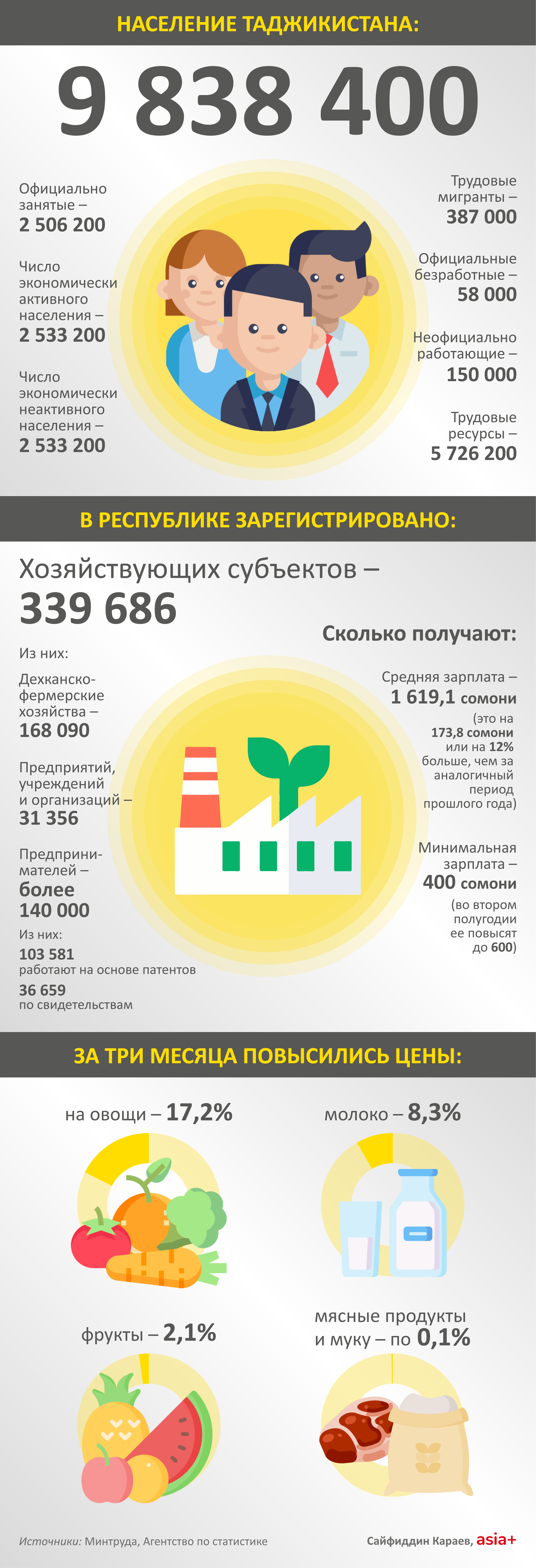 В статистике также цифры о населении Таджикистана, о том, сколько людей было занято на работе и на сколько повысились заработные платы.