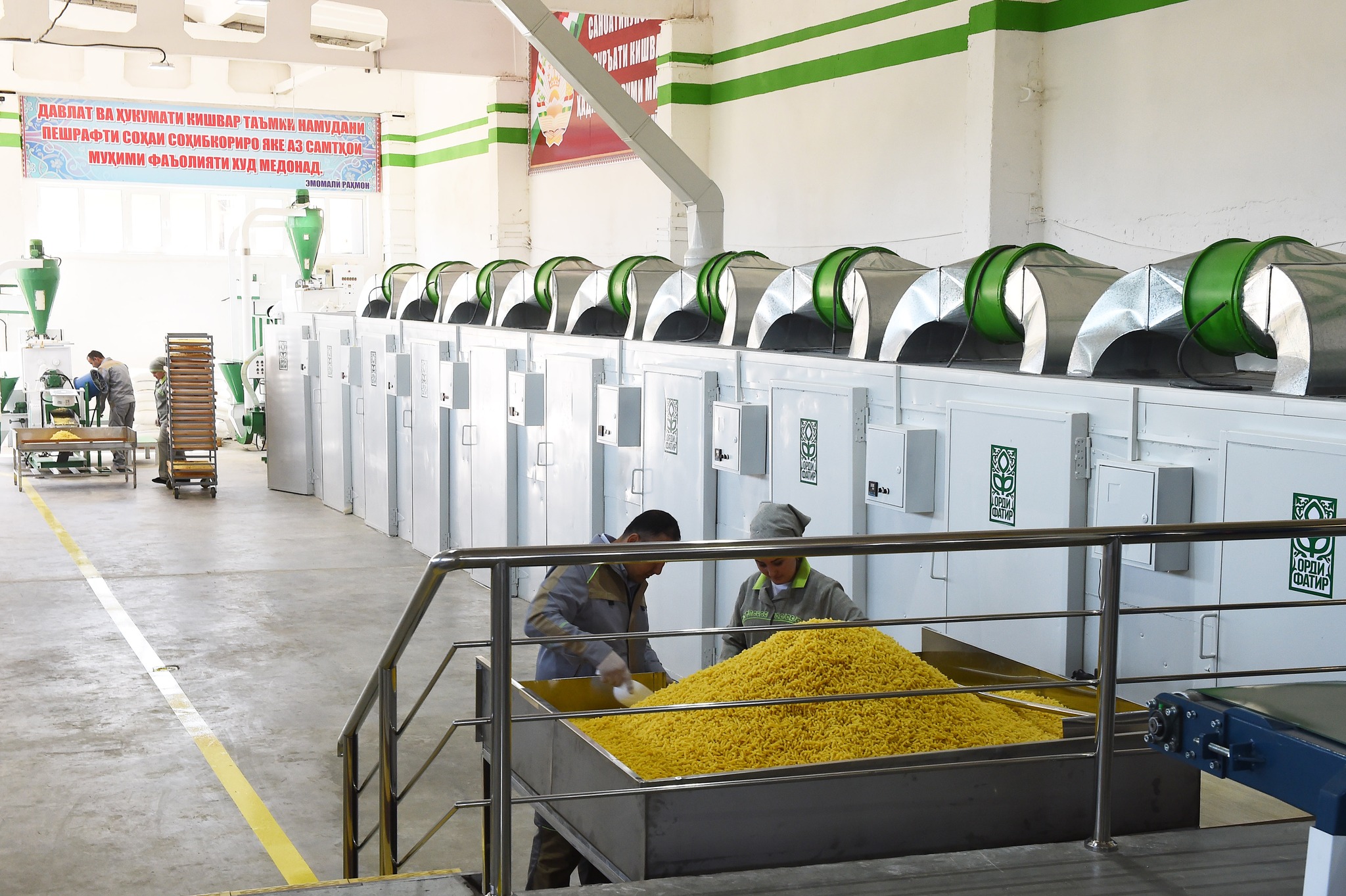 В этом же районе глава республики запустили еще одно предприятие — по производству 30 видов макаронных изделий «Орди фатир».