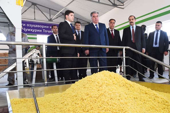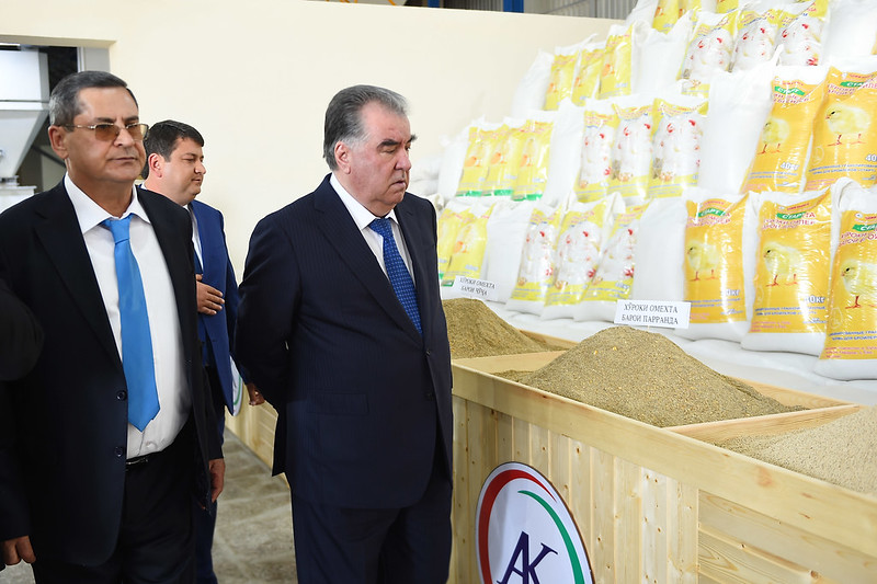Отмечается, что в селении Боги Боло сельского джамоата Ёва Б. Гафуровского района с участием президента был запущен цех по производству смешанных кормов для птиц и скота ООО «Амина-К».