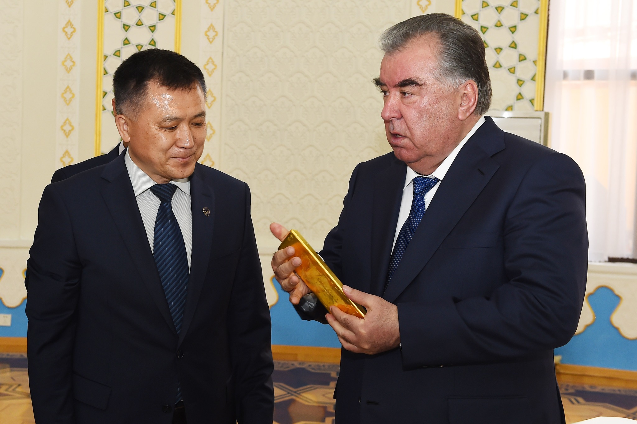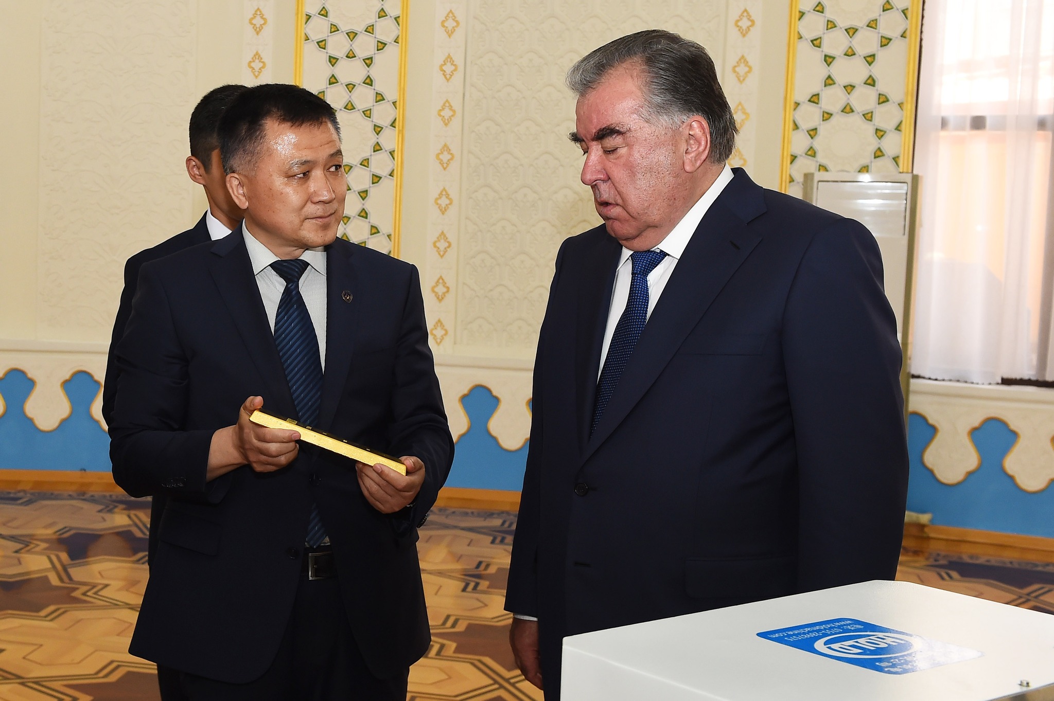 Эмомали Рахмон отметил клеймом №001 первый слиток золота, добытый и произведенный на месторождении «Кумарги Боло».