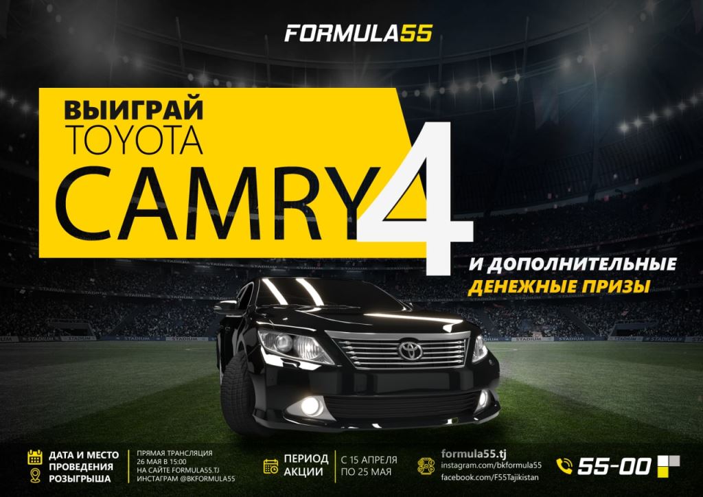 «Formula55» даёт старт очередной своей мега акции и разыгрывает TOYOTA CAMRY 4 и дополнительные денежные призы.