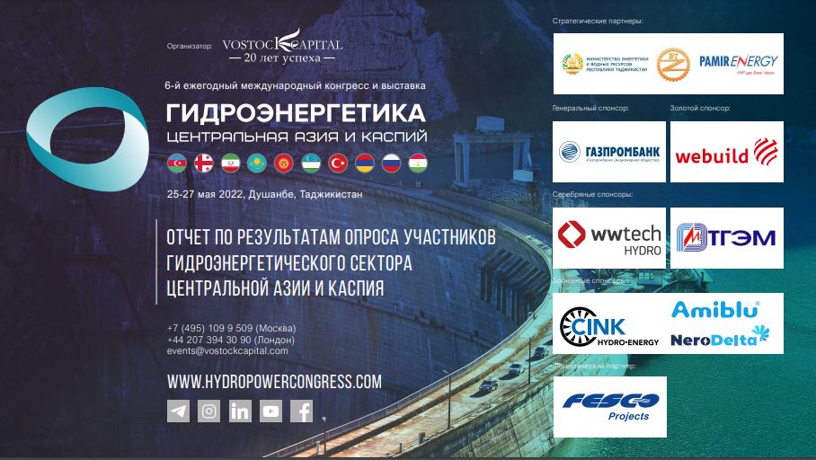 Организация «Восток Капитал» подготовила доклад по гидроэнергетическому сектору Центральной Азии и Каспия в преддверии ежегодного международного конгресса и выставки «Гидроэнергетика Центральная Азия и Каспий», который пройдет 25-27 мая этого года в Душанбе.