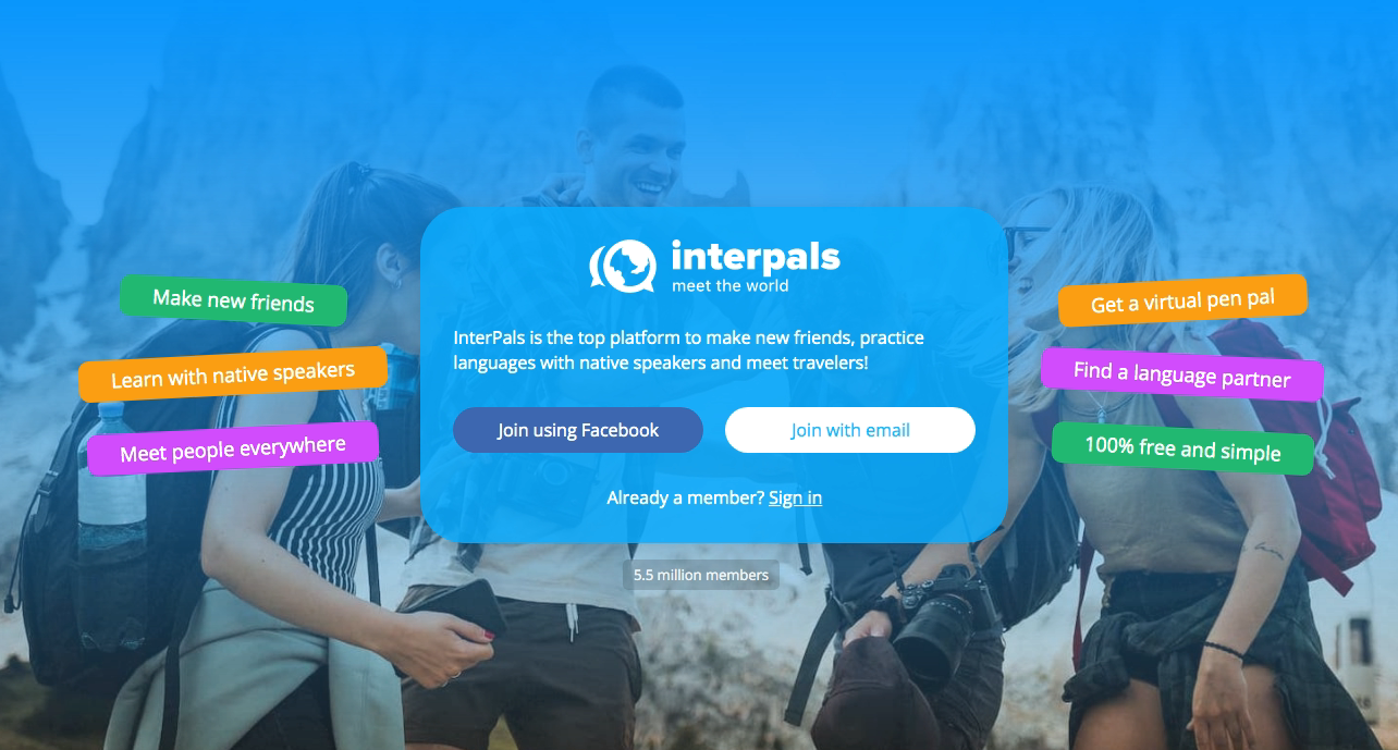 Interpals — один из самых старых сайтов для переписки людей со всего мира. Здесь можно учить почти все языки мира, от английского до корсиканского.