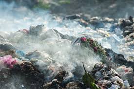 Из-за едкого дыма практически не видно солнца. Тысячи людей, которые живут возле свалки и зарабатывают на переработке мусора, сами пытаются потушить пожар.