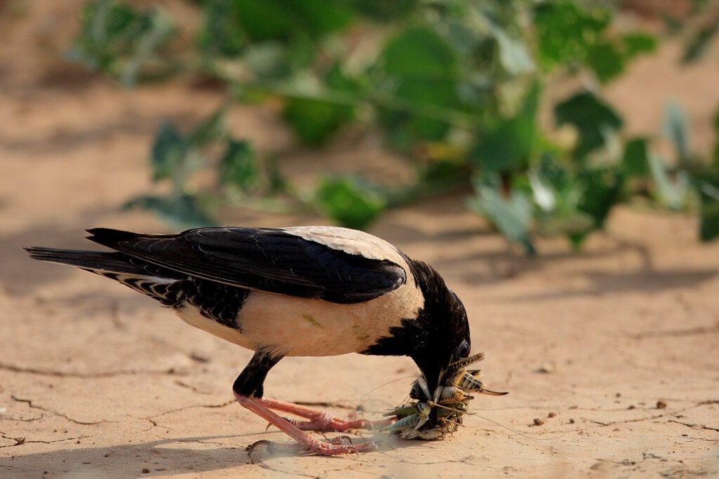 У также саранчи много естественных врагов среди животного мира. Саранчу охотно поедают куропатки, фазаны, скворцы, вороны, воробьи и другие пернатые. Любит ее и домашняя птица: куры, утки и индейки. Врагами насекомого являются также лягушки.