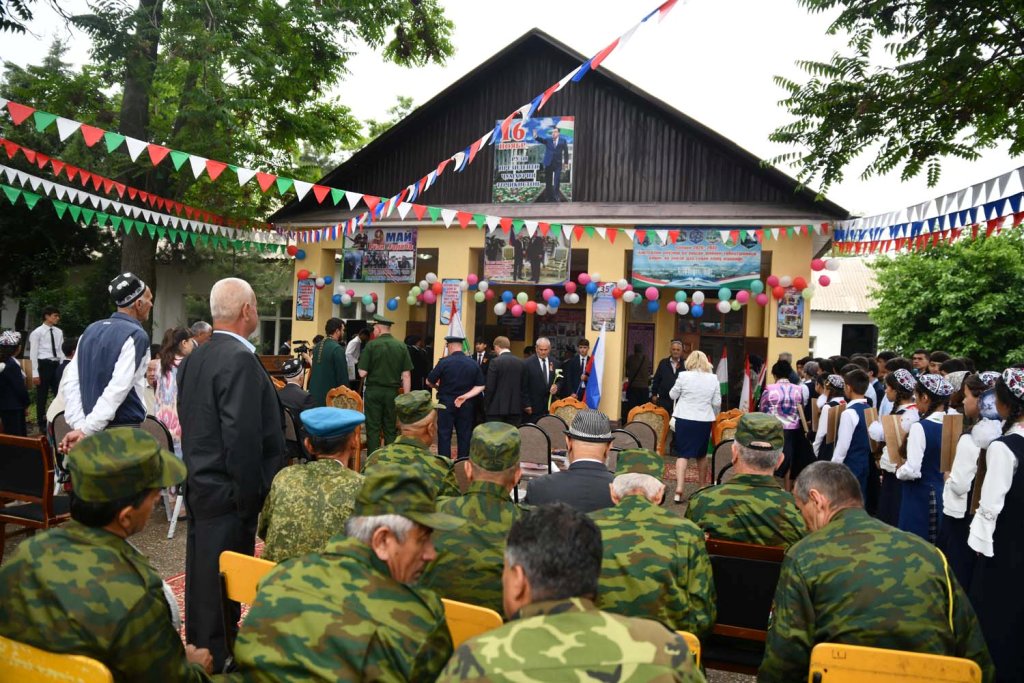 Торжественное открытие мемориальной доски на здании школы № 2 джамоата им. М. Турсунзаде в Шахринаве, где некогда располоагался эвакогоспиталь № 2949, прошло 4 мая.