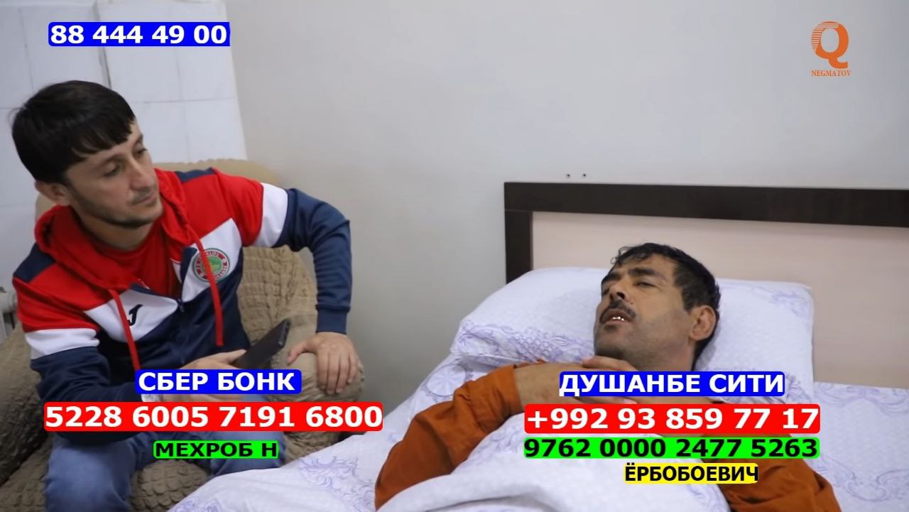 Блогер Курбон Нематов также разместил на своей странице в YouTube видео, на котором Кадами Курбон в больнице благодарит министерство здравоохранения, докторов и других доброжелателей.