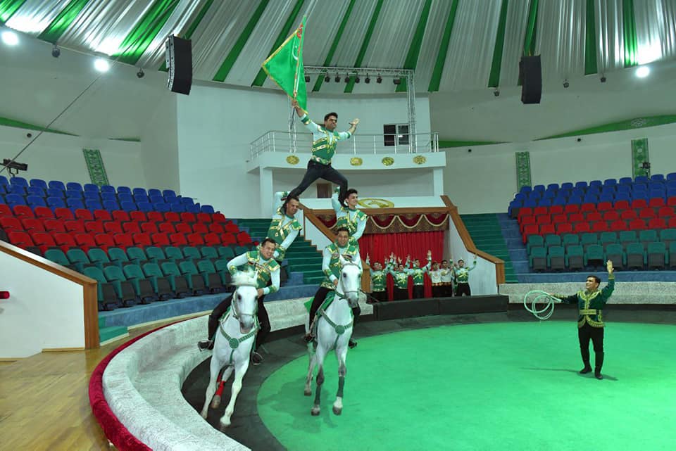 Затем он побывал в Международном конно-спортивном комплексе в Ашхабаде, где для него была представлена программа артистов конно-спортивной группы «Галкиниш».