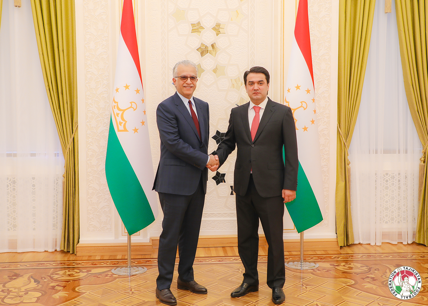 Он первым делом встретился с главой таджикского футбола Рустамом Эмомали и обсудил пути развития футбола в Таджикистане и центральноазиатском регионе.