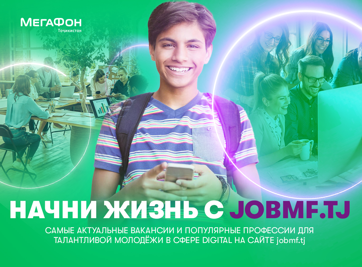 Сайт для талантливой молодёжи, желающей найти работу в большой надёжной компании, наконец-то появился в Таджикистане. Конструктор для создания электронного резюме, самые актуальные вакансии и популярные профессии в сфере digital – таковы преимущества сервиса jobmf.tj. Он позволит узнать, какие сотрудники нужны компании «МегаФон Таджикистан», и фактически пройти онлайн первый этап собеседования.