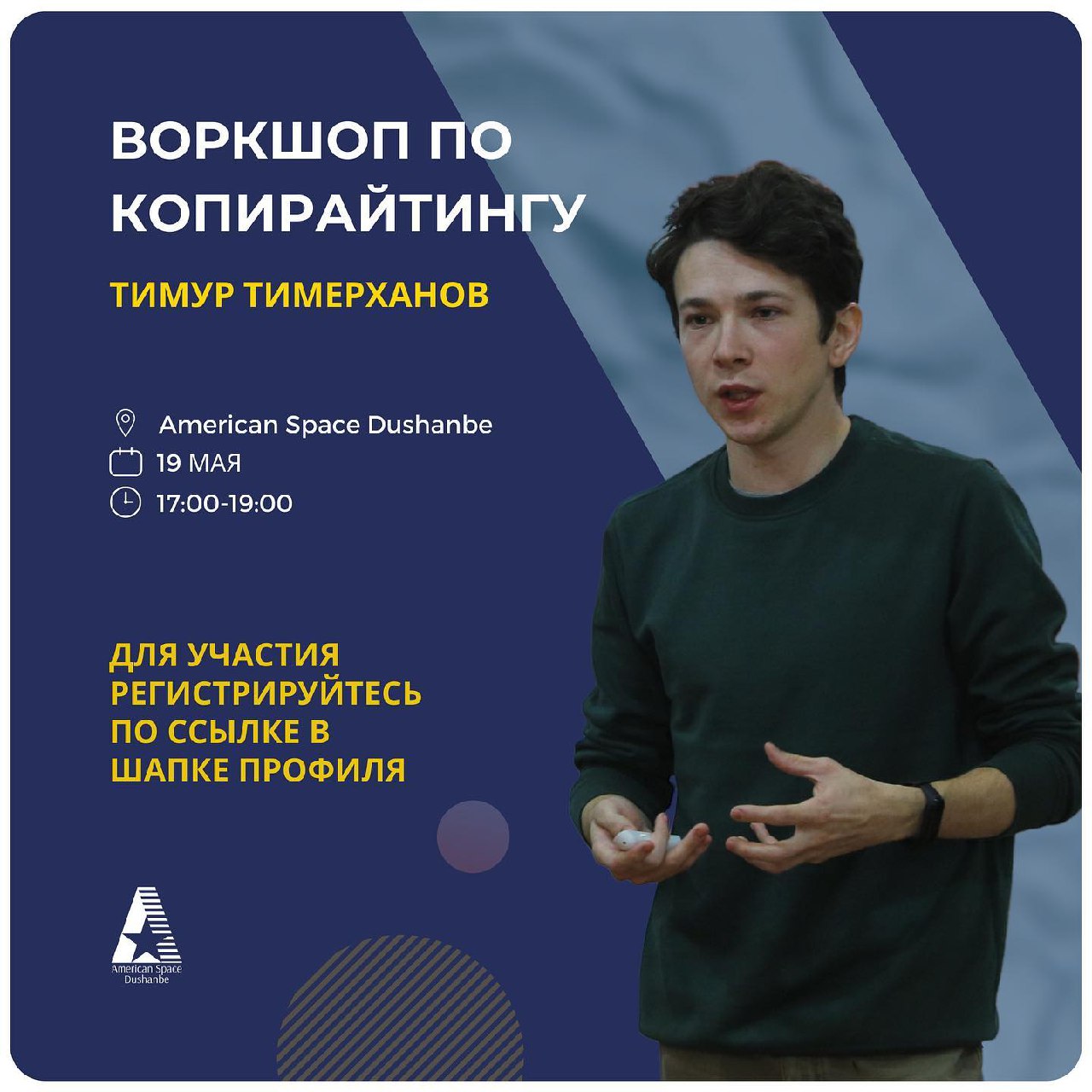 Воркшоп пройдет 19 мая с 17:00 до 19:00 в Американском центре Душанбе по адресу: Бизнес-центр "Пойтахт", ул. М. Турсунзода, 49, 3 этаж Тел.: 98-760-02-22, [email protected], Instagram