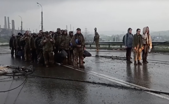 Российское Минобороны опубликовало видео выхода последней группы украинских военных, которые были заблокированы на заводе «Азовсталь» в Мариуполе, с территории комбината.