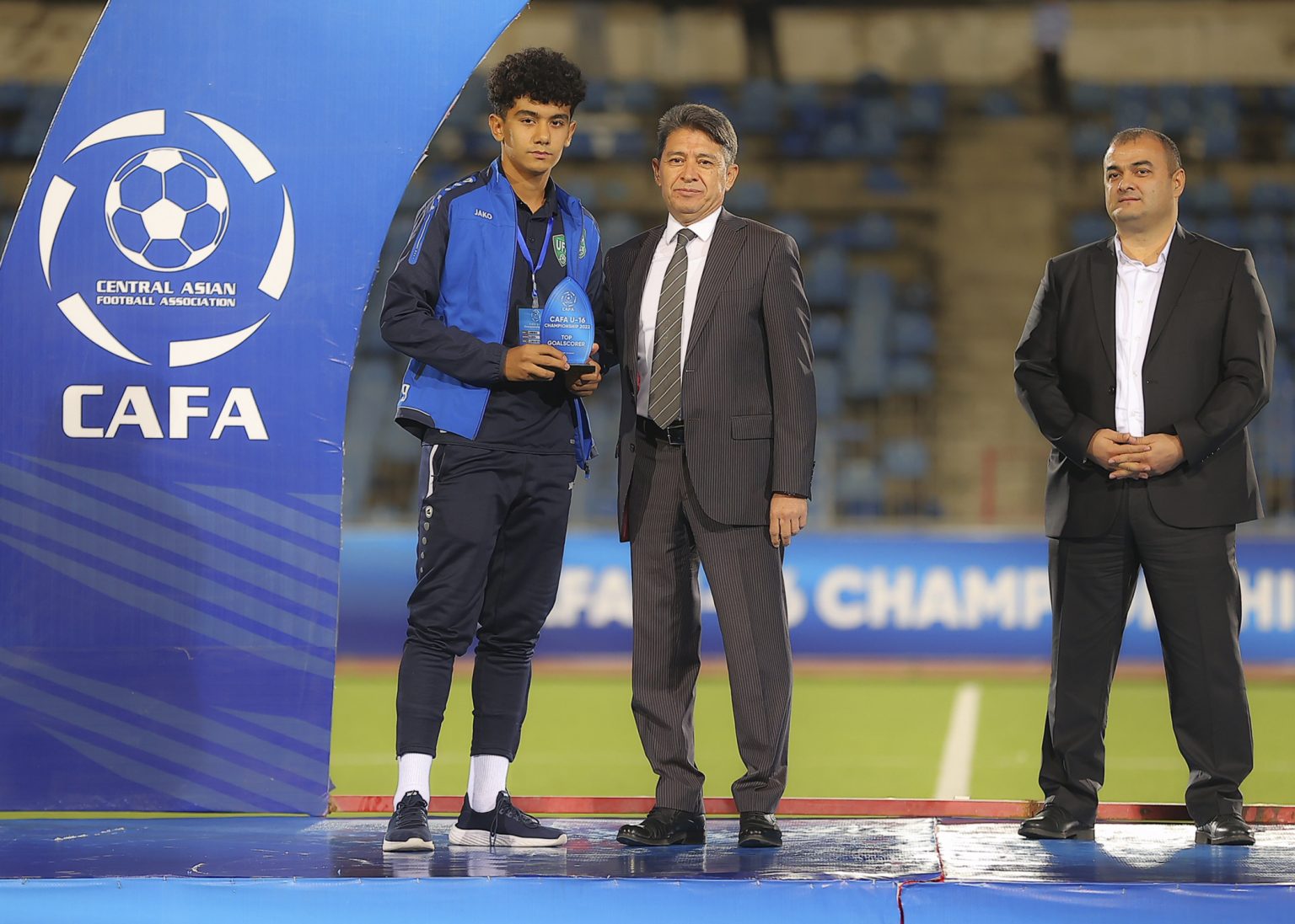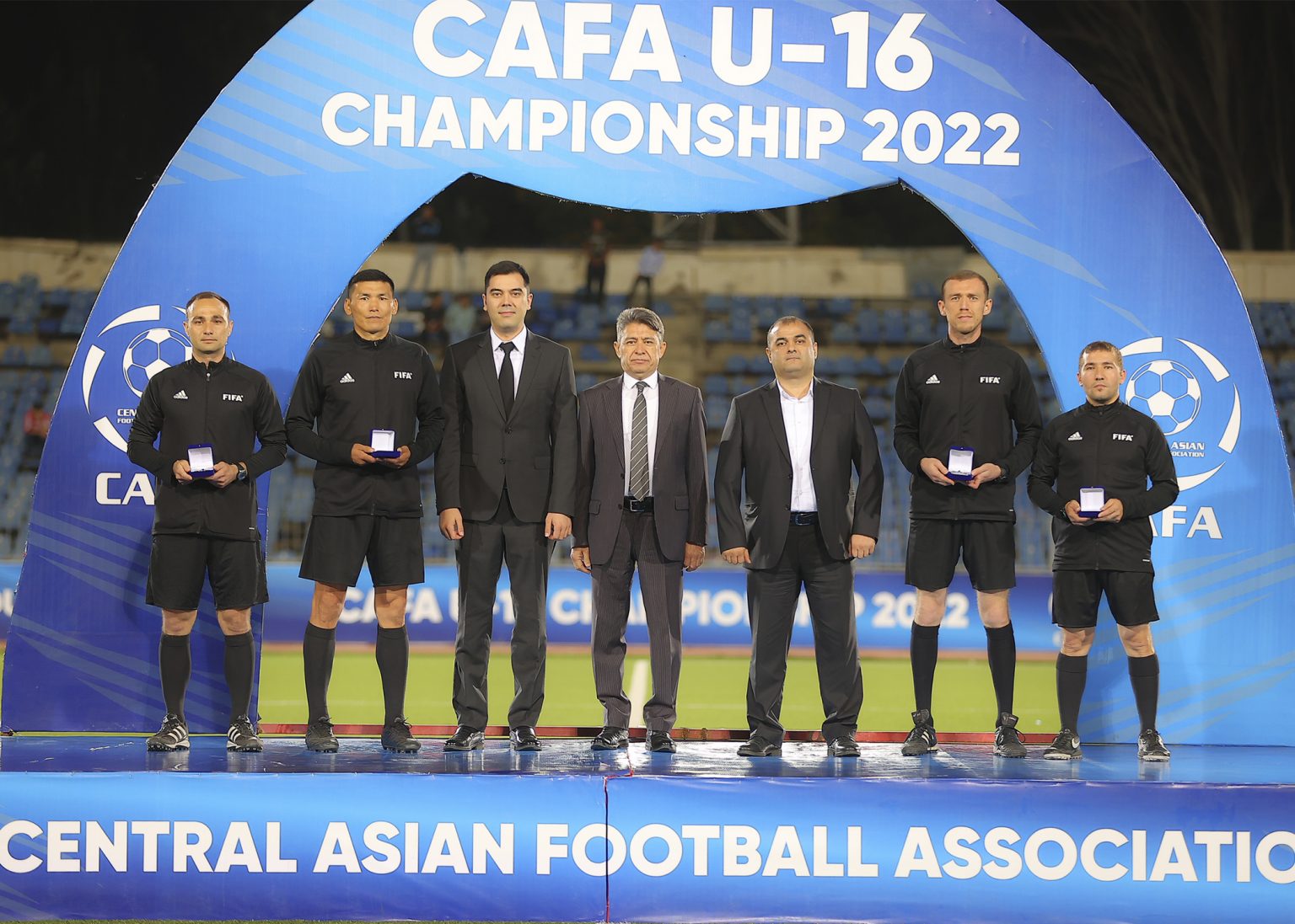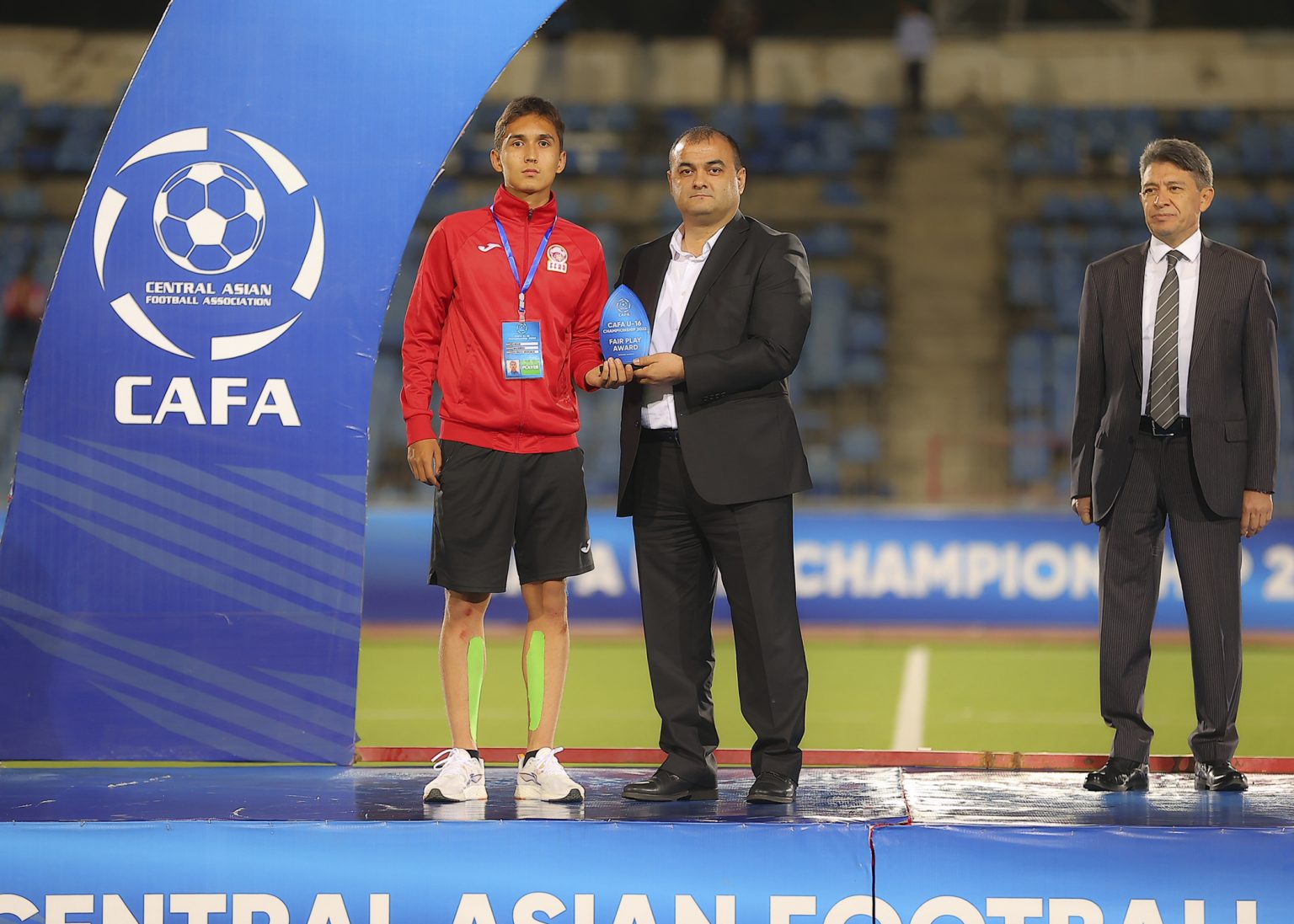 На церемонии закрытия, награждения победителей и призеров чемпионата CAFA-2022 среди юношеских сборных до 16 лет приняли участие вице-президент Федерации футбола Таджикистана Алишер Урунов, генеральный секретарь ФФТ Давлатманд Исломов и генеральный секретарь Центрально-Азиатской футбольной Ассоциации Улугбек Каримов.