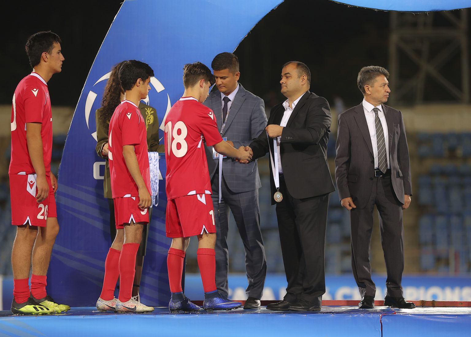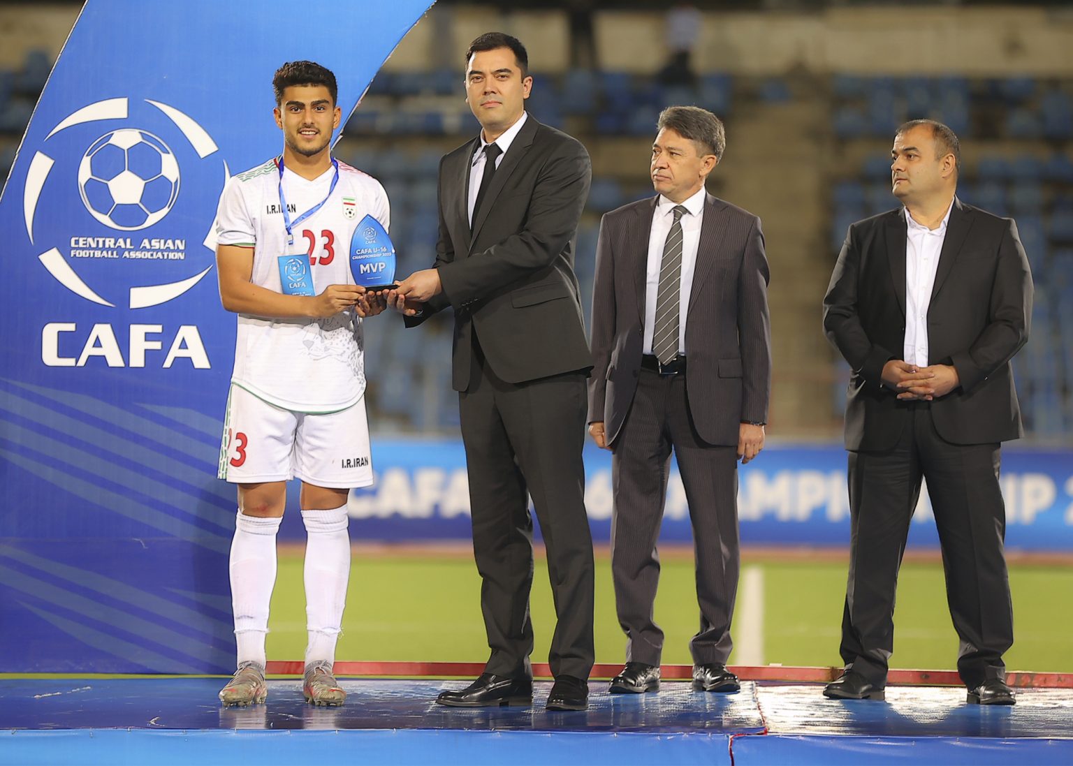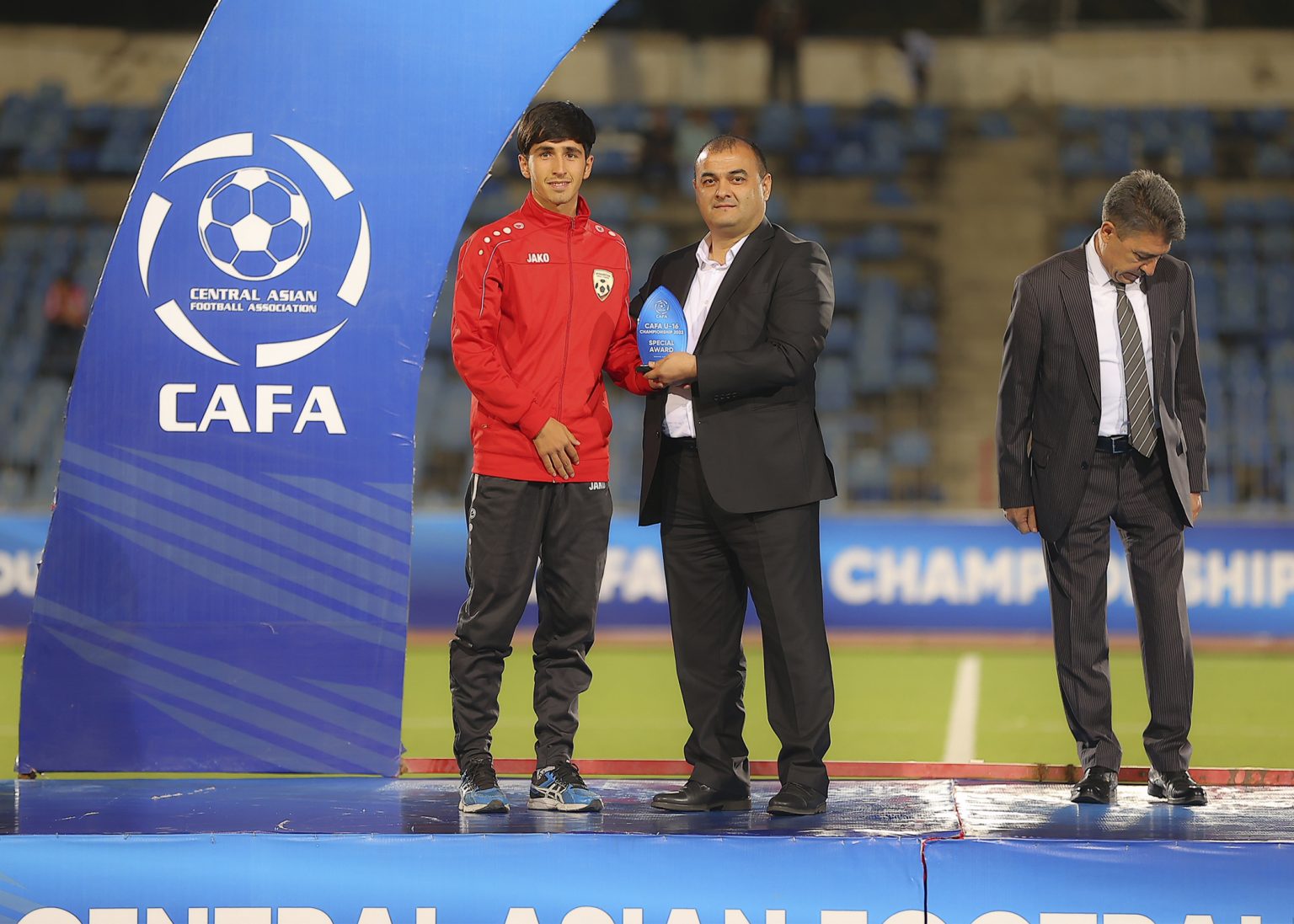 На церемонии закрытия, награждения победителей и призеров чемпионата CAFA-2022 среди юношеских сборных до 16 лет приняли участие вице-президент Федерации футбола Таджикистана Алишер Урунов, генеральный секретарь ФФТ Давлатманд Исломов и генеральный секретарь Центрально-Азиатской футбольной Ассоциации Улугбек Каримов.
