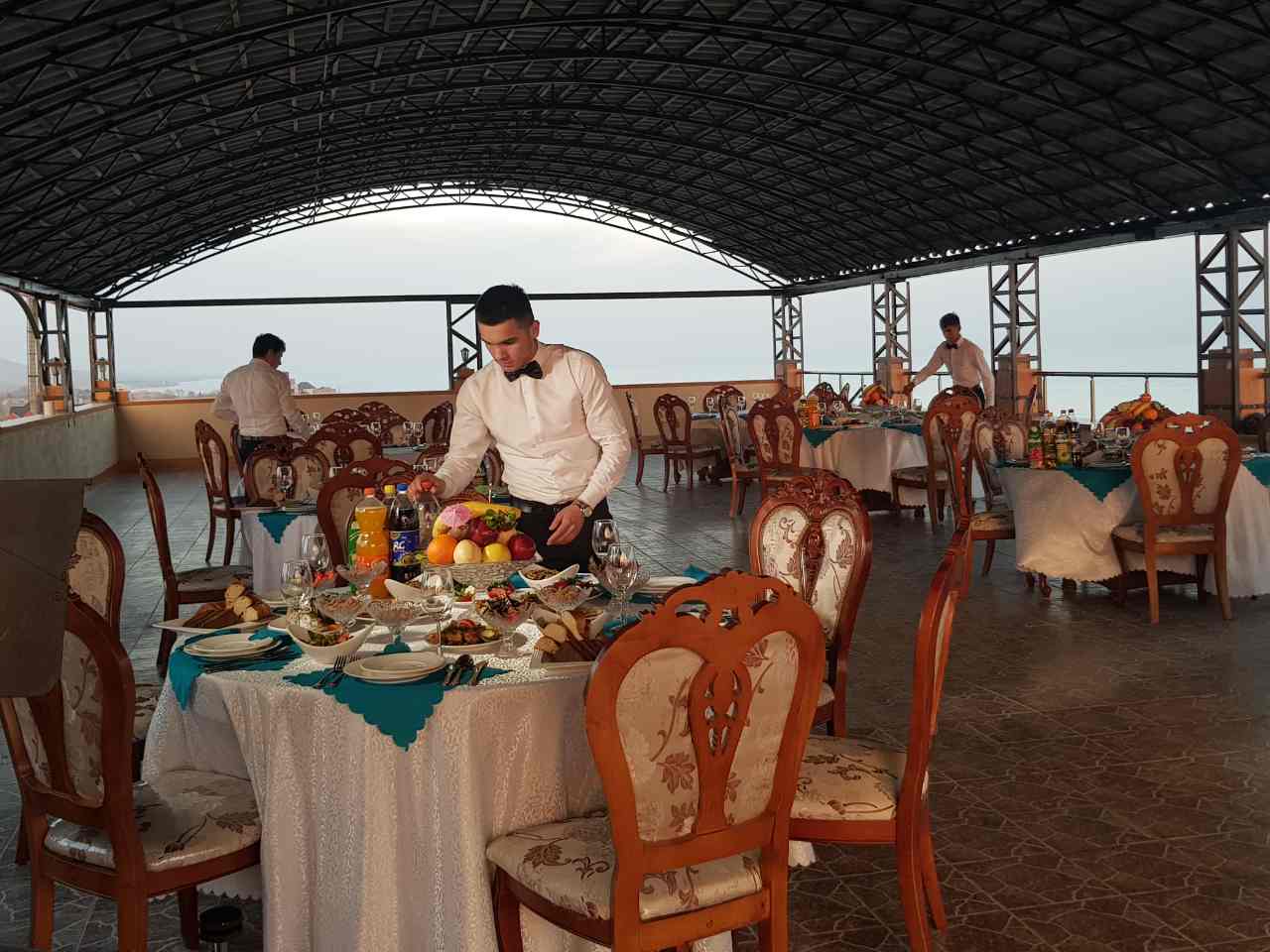 Для банкетов и кофебрейков предусмотрены столы на 150 мест, повара сами готовят гостям как национальные, так и европейские блюда.
