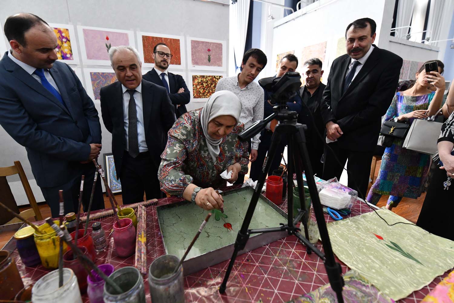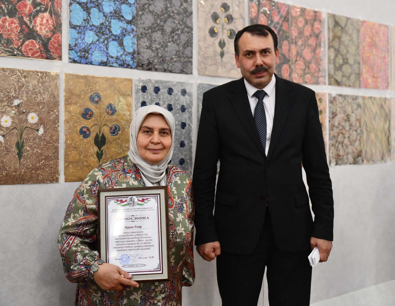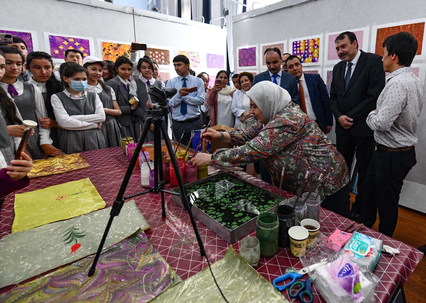 В Государственном институте изобразительного искусства и дизайна Таджикистана прошла выставка работ учащихся курса по искусству Эбру.