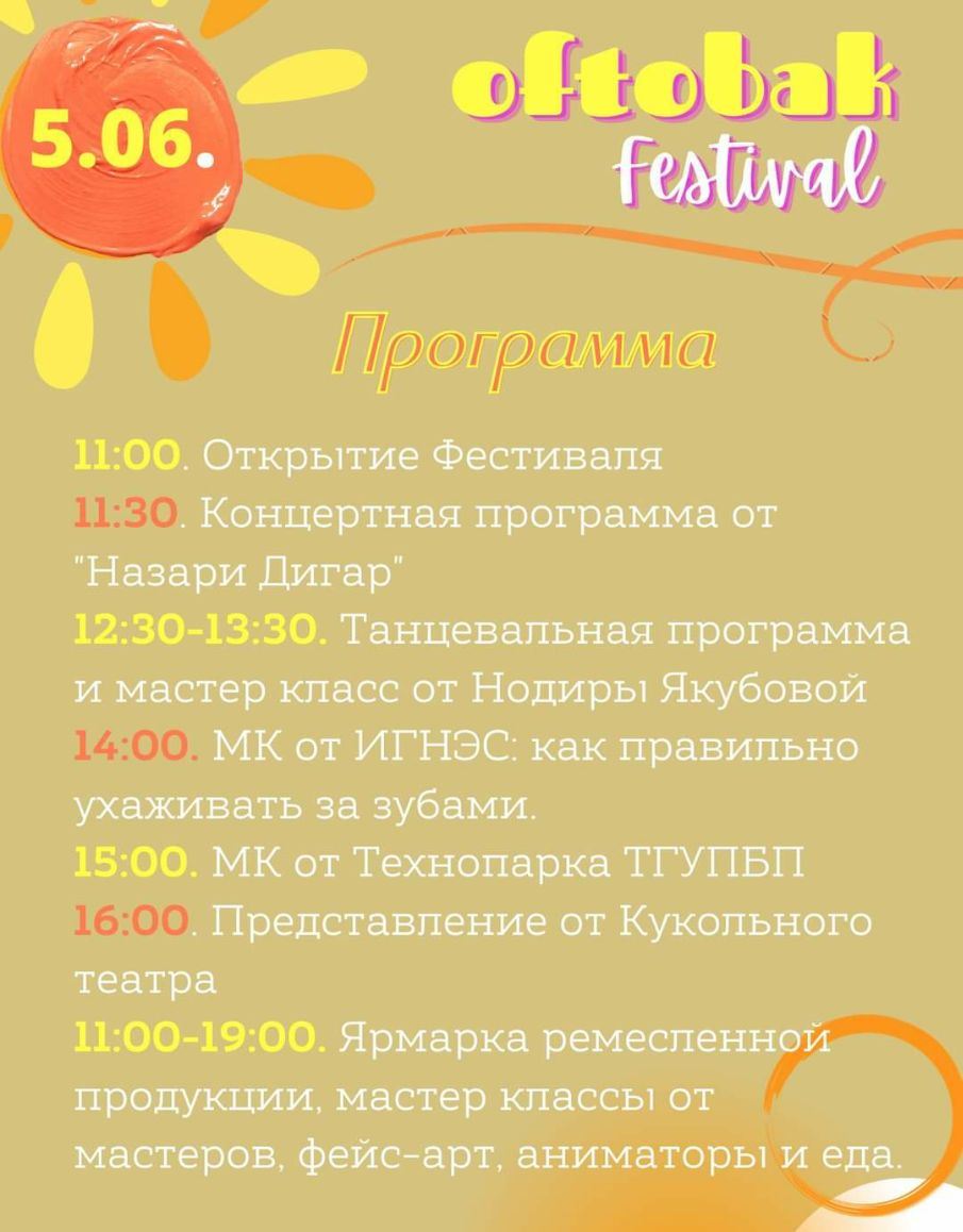 Это благотворительный фестиваль, который состоится 5 июня в 11:00 в Худжанде в доме-музее Камоли Худжанди. Это будет не только интересно, но также полезно и очень вкусно.