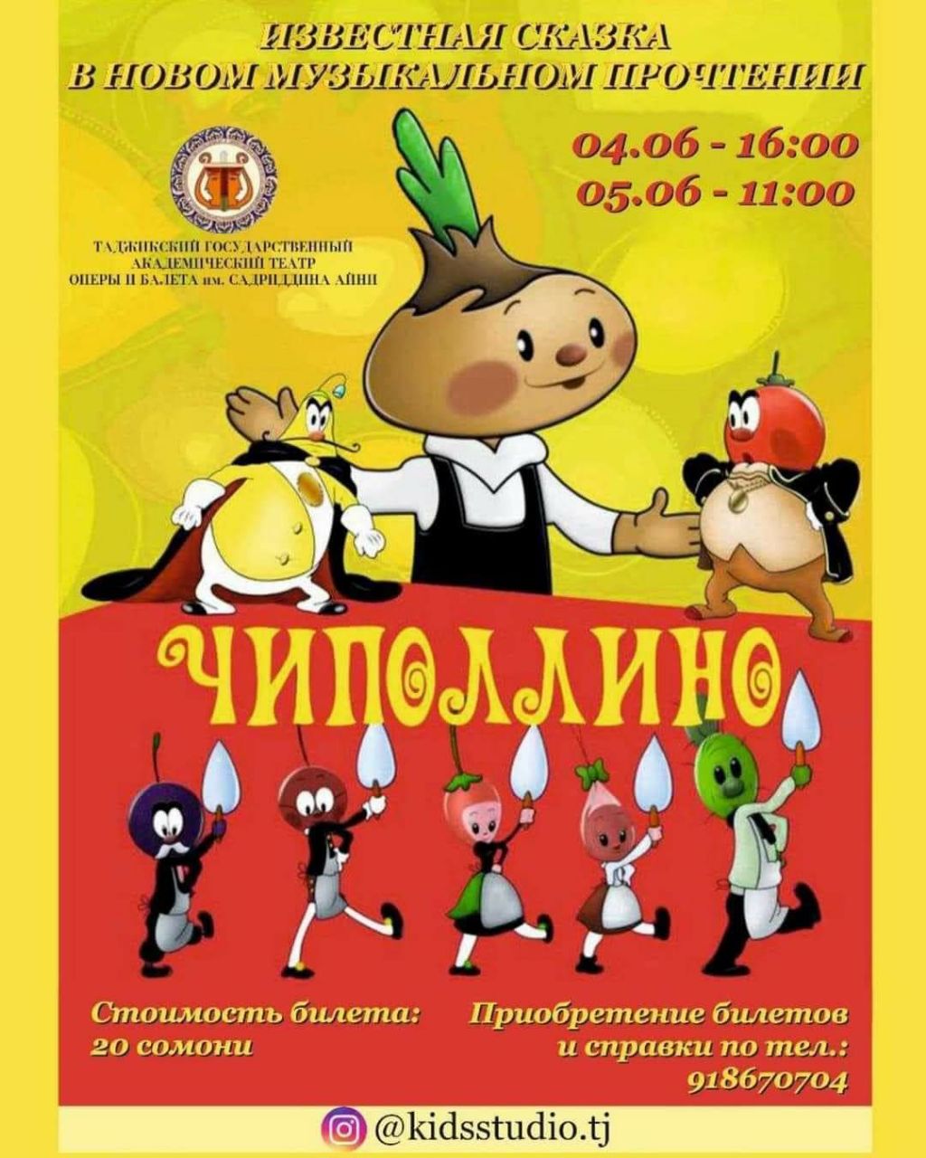 В Таджикском государственном академическом театре оперы и балета имени Садриддина Айни 5 июня состоится показ детского музыкального спектакля «Чиполлино».