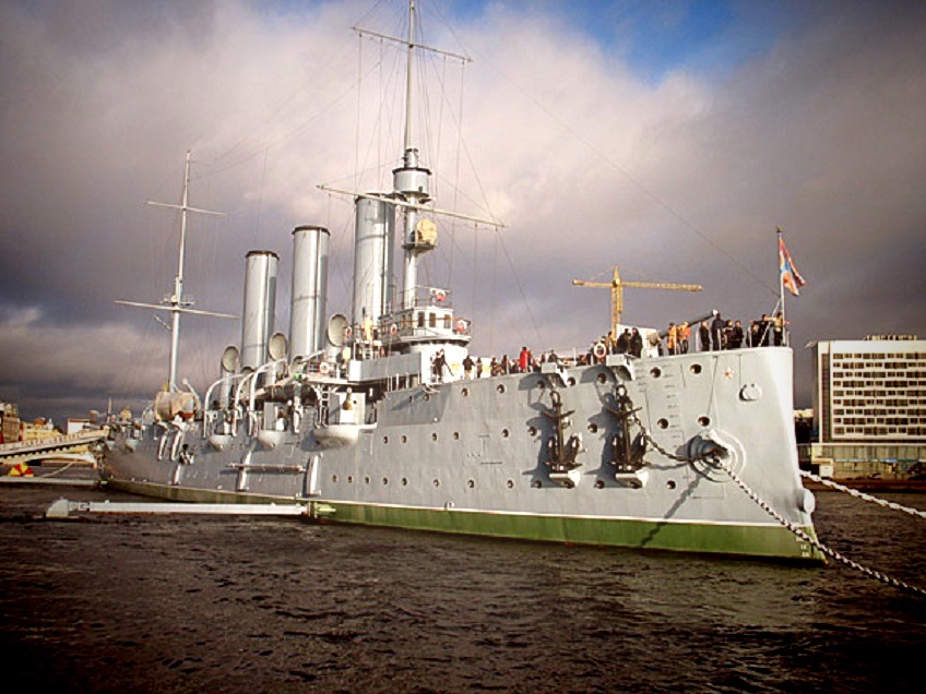 4 июня 1897 года в Санкт-Петербурге на судостроительной верфи Новое адмиралтейство началось строительство крейсера «Аврора». Корабль был спущен на воду в мае 1900 года, а в июле 1903 года вступил в строй боевых кораблей флота России. Свое название крейсер получил в честь фрегата «Аврора», защищавшего Петропавловск-Камчатский в годы Крымской войны (1853-1856).