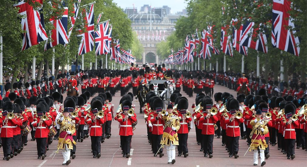 В этот день специально обученные части Королевской конной гвардии проходят торжественным маршем со знаменами по плац-параду конной гвардии. За почти полвека царствования Елизаветы II торжественный парад отменяли лишь однажды — в 1955 году из-за забастовки железнодорожников.