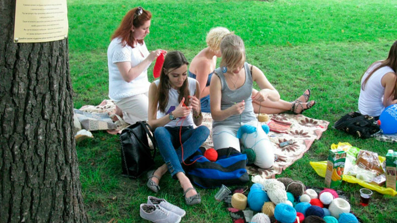 В одну из суббот июня, начиная с 2005 года, в мире отмечается необычный праздник —Всемирный день вязания на публике. В этом году это 11 июня.