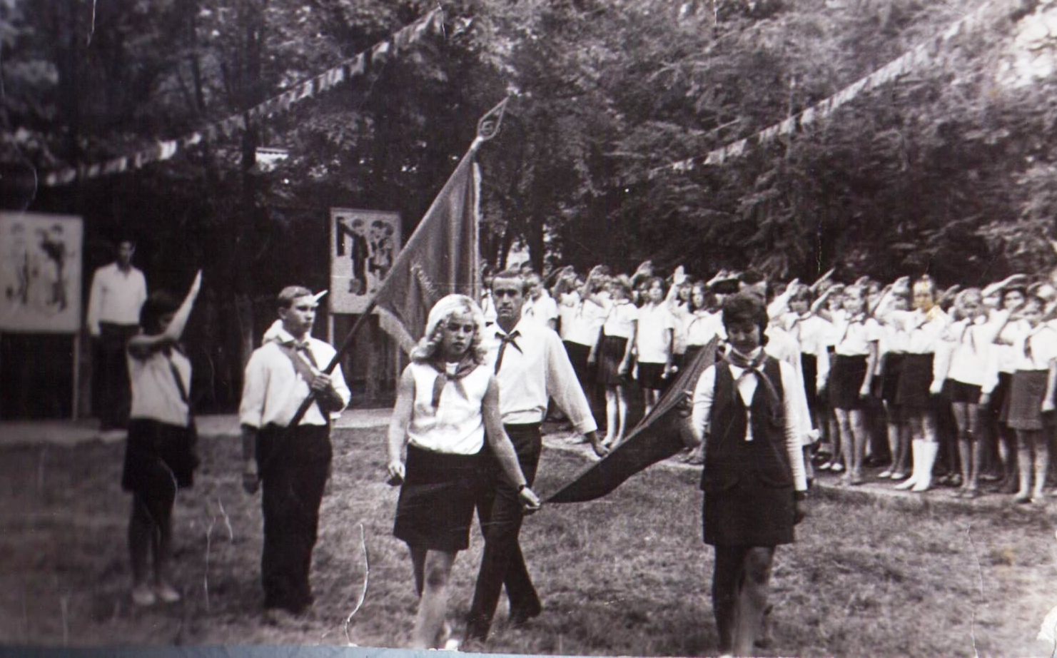 Смена начиналась с торжественной линейки и поднятия флага, а заканчивалась снятием флага и огромным пионерским костром вечером.