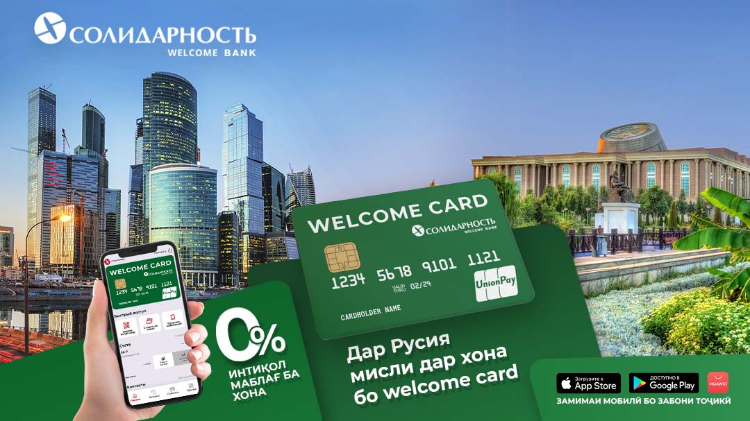 Карта UnionPayGold «WelcomeCard» от Банка «Солидарность» сегодня выступает как уникальный финансовый инструмент на рынке банковских услуг для граждан Таджикистана, осуществляющих трудовую деятельность в России.