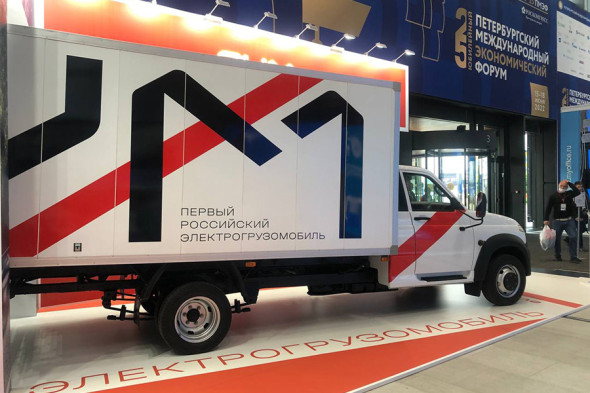 Первый электрогрузомобиль российского производства EVM Pro, допустимая полезная нагрузка — 1 т, запас хода на одном заряде — 300 км
