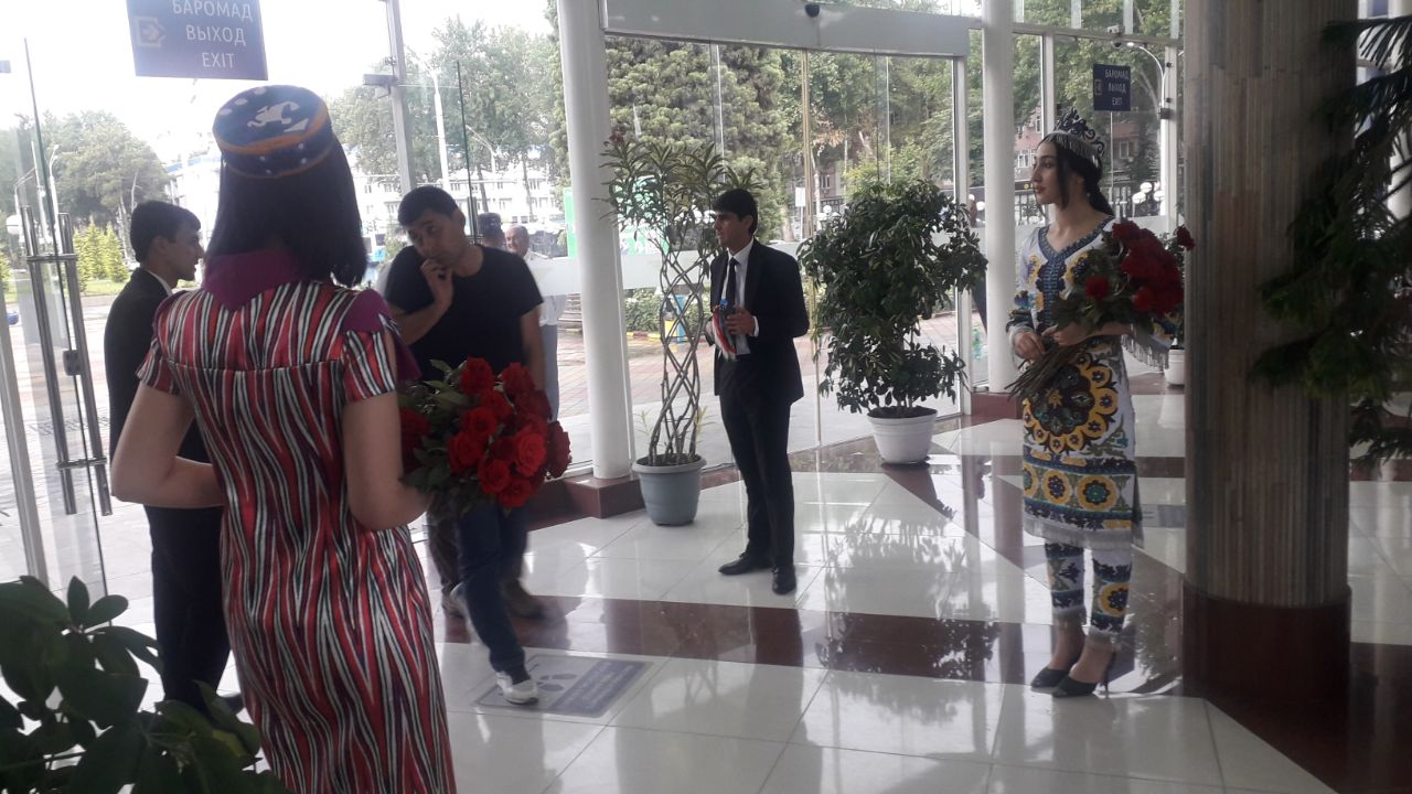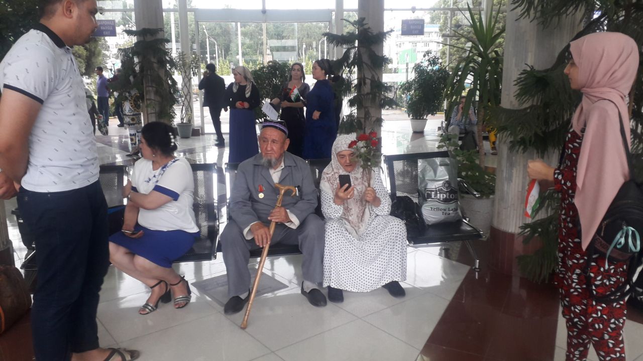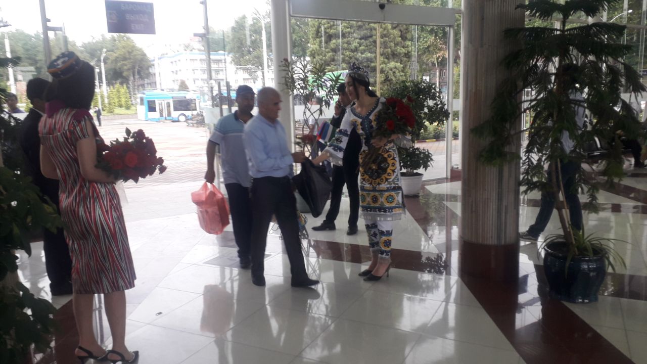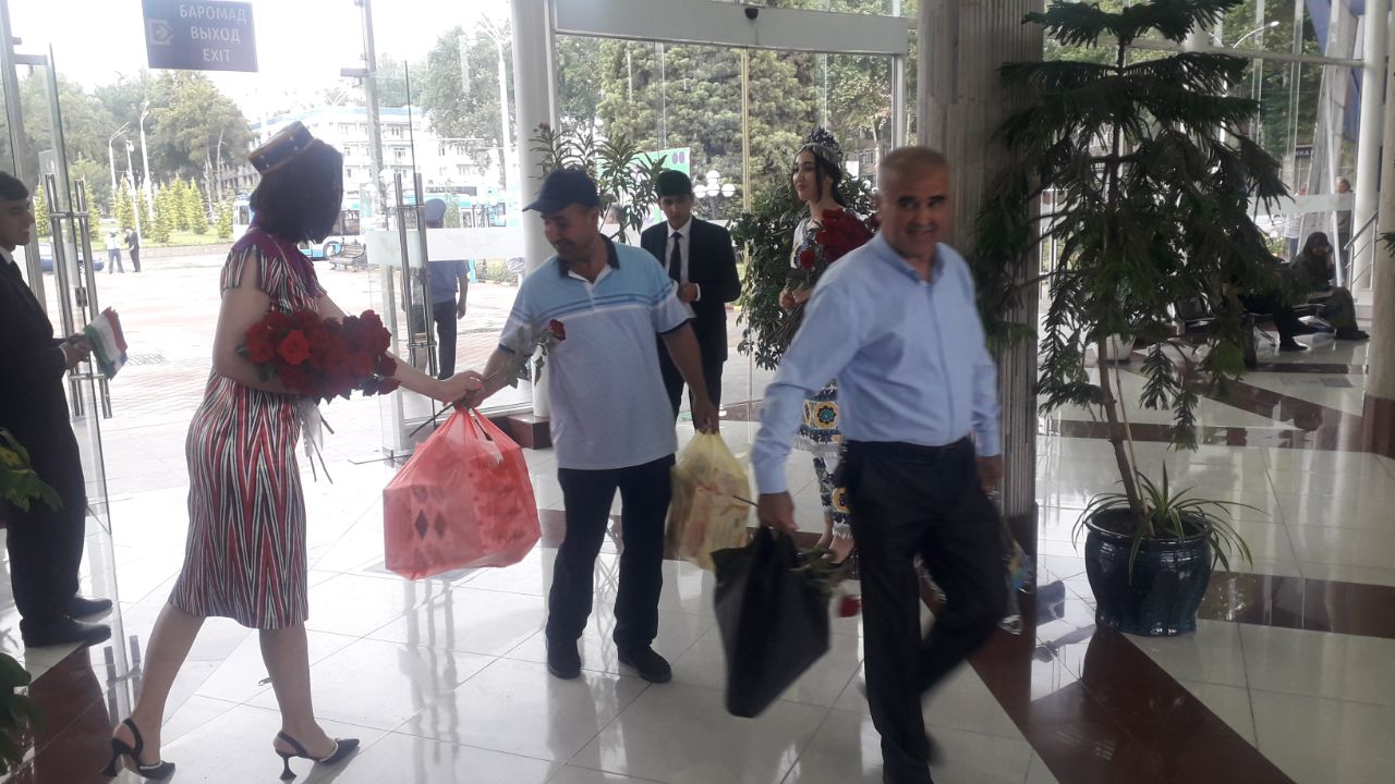 Приехавших этим поездом пассажиров из Ташкента встречали в душанбинском ж/д-вокзале с цветами.