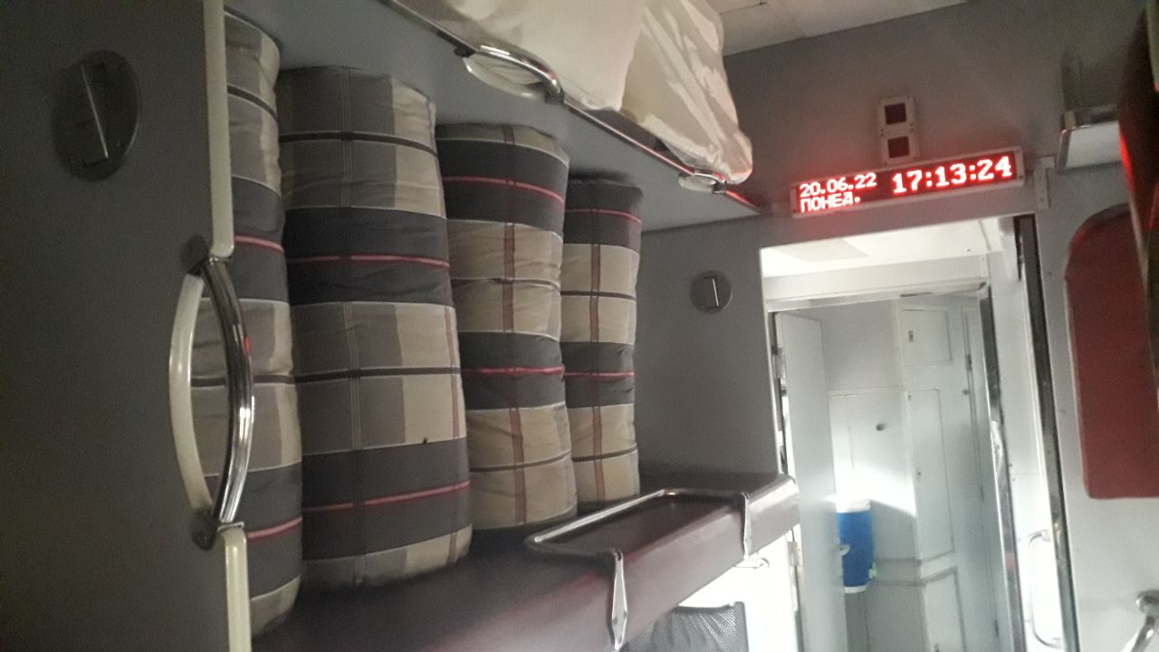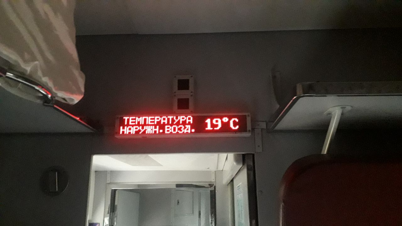 Новые и вагоны, автоматизированные, украинского производства. Внутри есть табло с информацией о дате, графике маршрута, температуре воздуха в салоне. В один вагон-купе можно набрать до 54 пассажиров.
