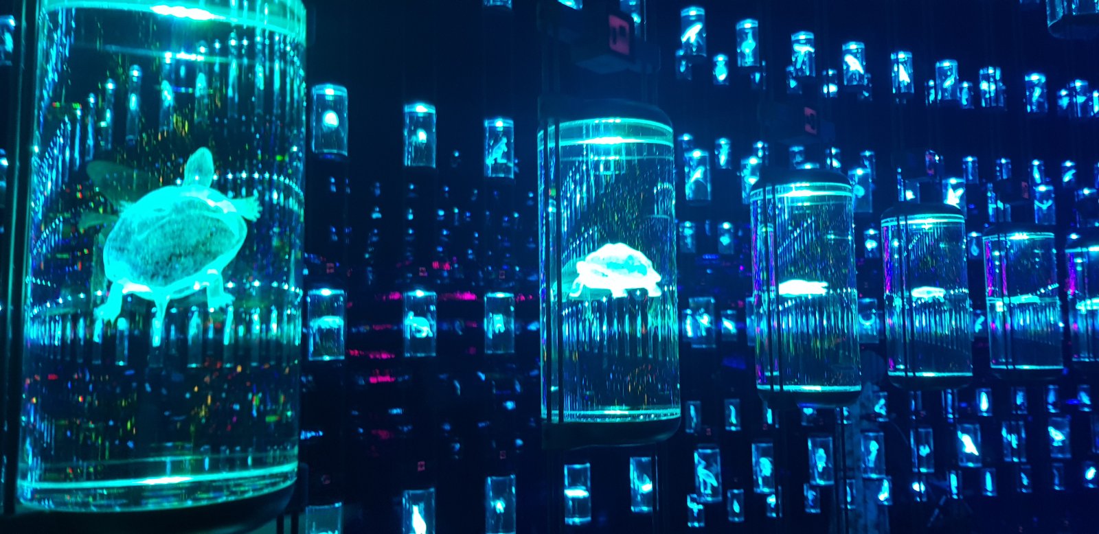 Один из самых впечатляющих залов музея заполнен висящими в воздухе капсулами, внутри которых проекция всех живых существ, растений, микроорганизмов земли. С помощью специального прибора, прикоснувшись к капсуле, вы можете узнать, когда вымрет последний из представителей этого вида.