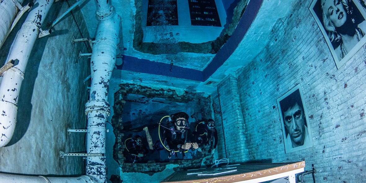 Любители дайвинга могут попрактиковать свои навыки в самом глубоком бассейне в мире в центре Deep Dive Dubai, который вмещает в себя 14 миллионов литров воды и целый затонувший город.