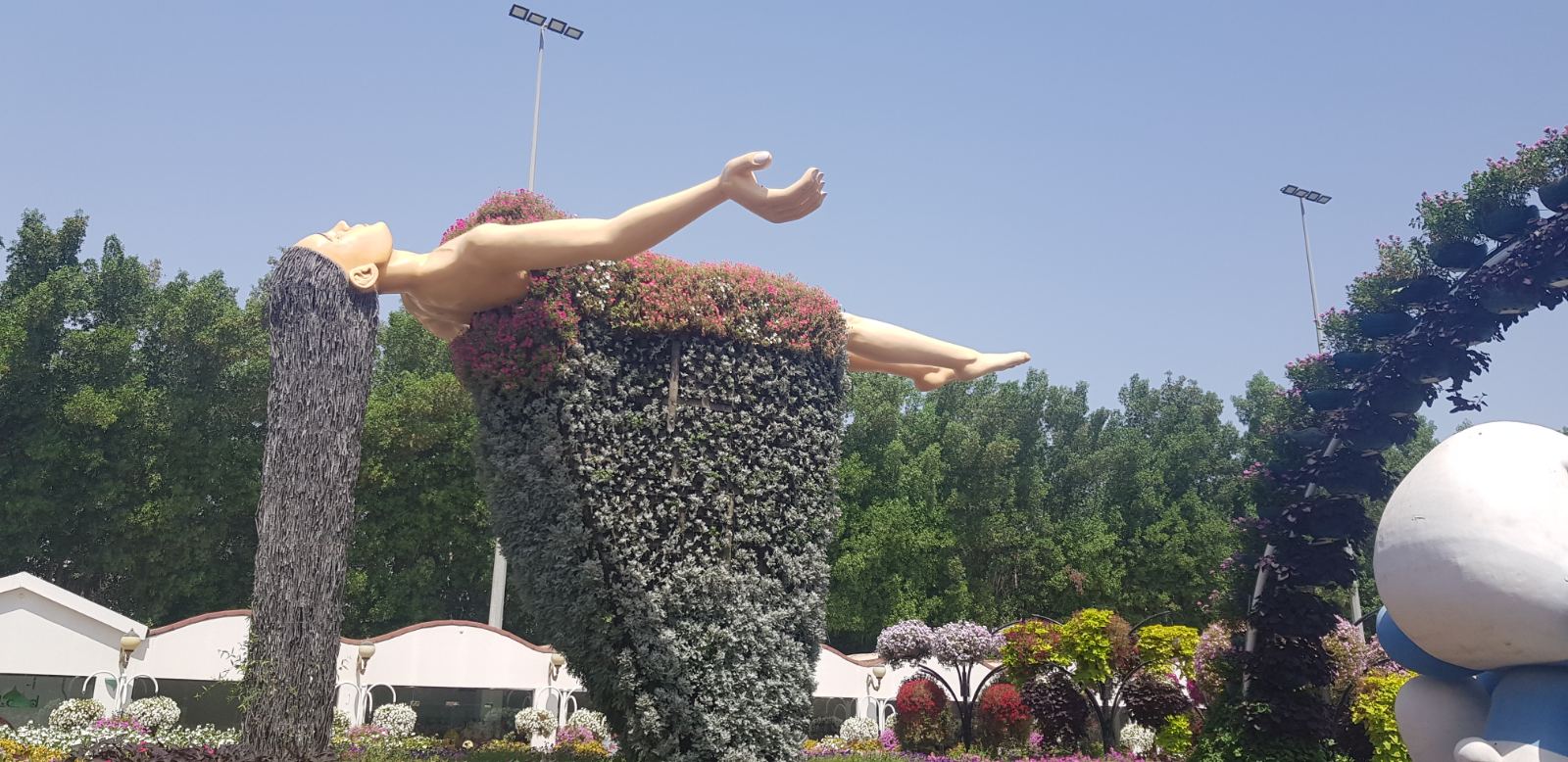 Его площадь составляет 72 000 квадратных метров, а его главная достопримечательность — точные копии знаменитых зданий и архитектурных сооружений, выполненные из цветов.