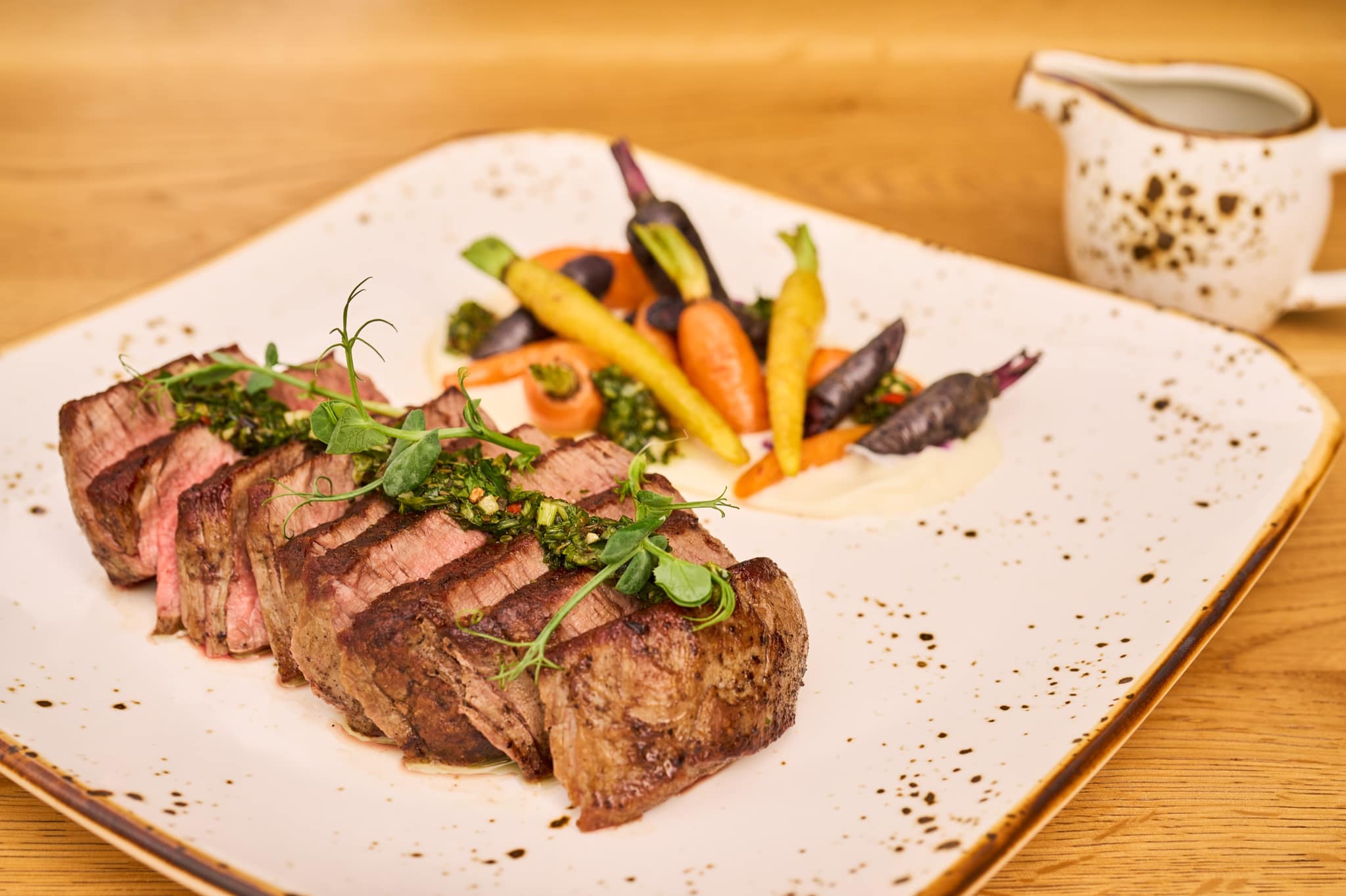 Ресторан, помимо, основных горячих блюд и салатов, славится своими оригинальными напитками и десертами. Сюда смело можно идти с детьми, так как тут есть и игровая площадка.