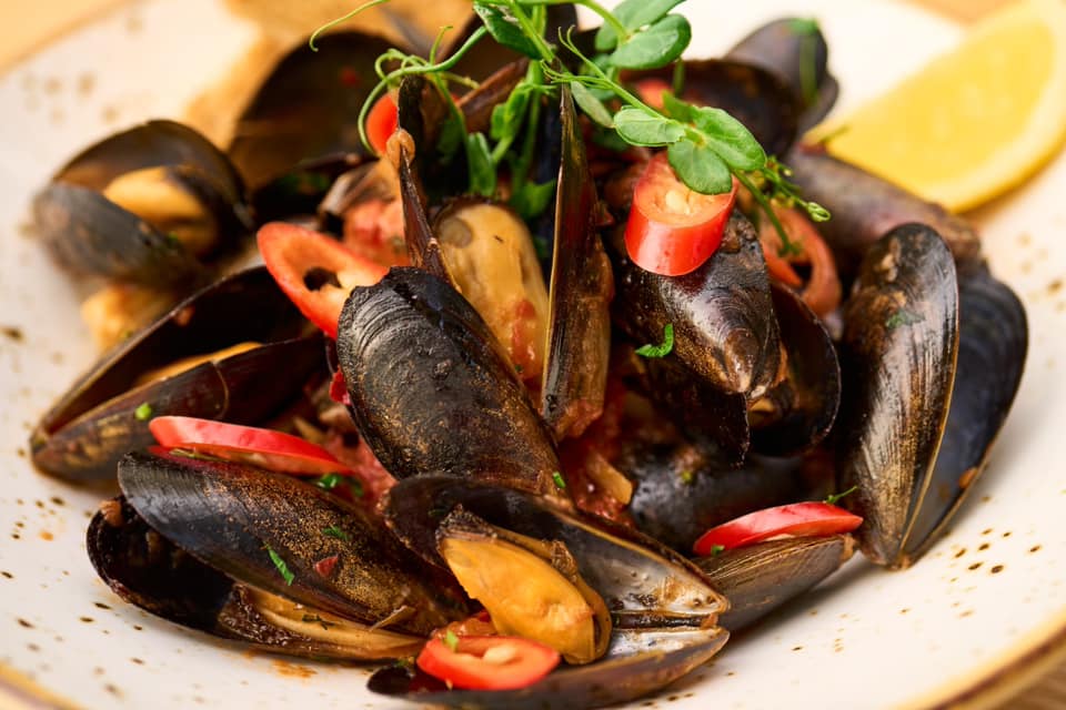В меню мидии – сырые и жаренные, ягненок, запеченный в горшке под землей, верблюжье мясо, зайчатина, тажин из курицы (со сливами, корицей, имбирем, шафраном, картофелем), традиционные супы, салаты и, конечно, настоящий арабский самбоусек (тонкий, хрустящий лаваша) и ароматный кофе.