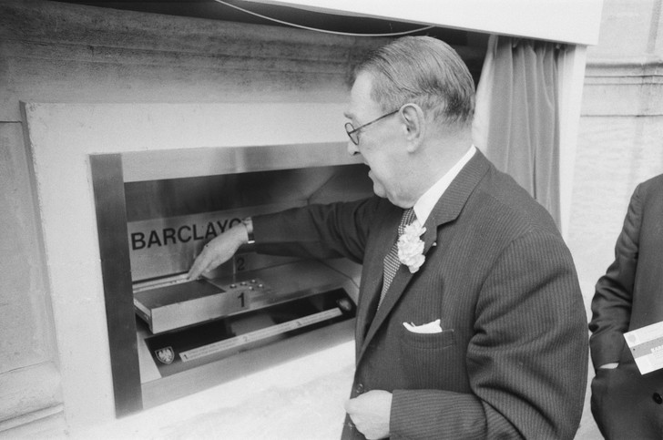 Создателем первого терминала для получения наличных денег является изобретатель Джон Шепард-Баррон, который работал на компанию De La Rue -фирму по производству бумаги для денег. А к идее изобретения банкомата Шепард-Баррона подтолкнул увиденный им автомат, который продавал шоколадные батончики.