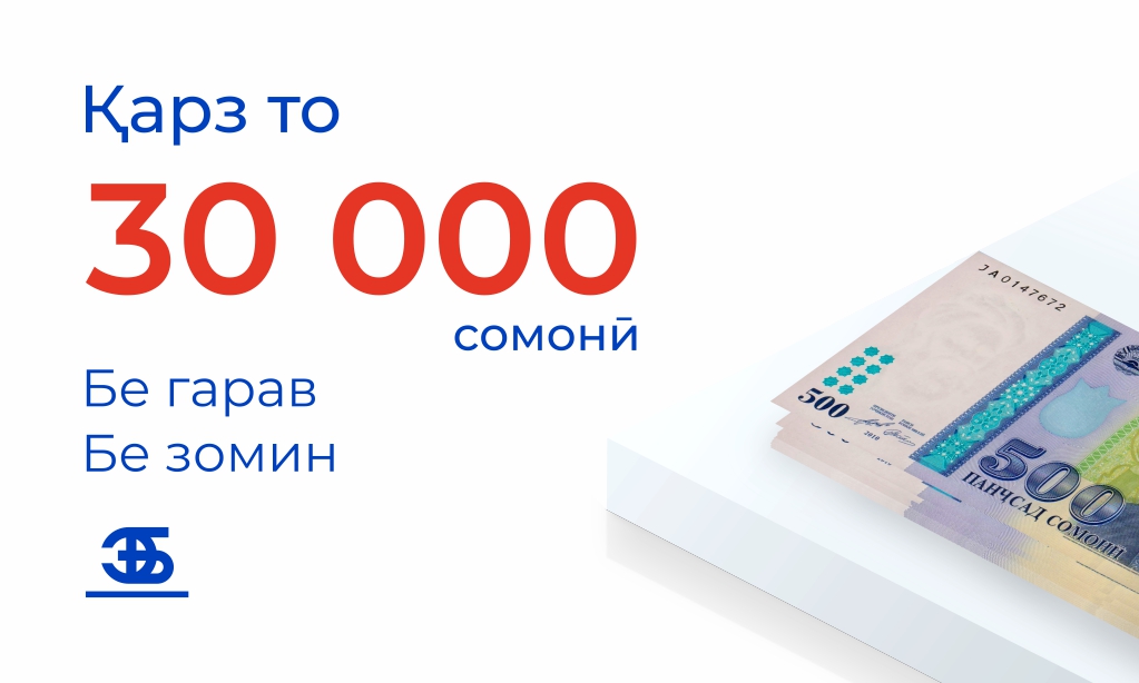 Банк Эсхата предлагает многоцелевой потребительский кредит до 30 000 сомони, сроком на 36 месяцев.